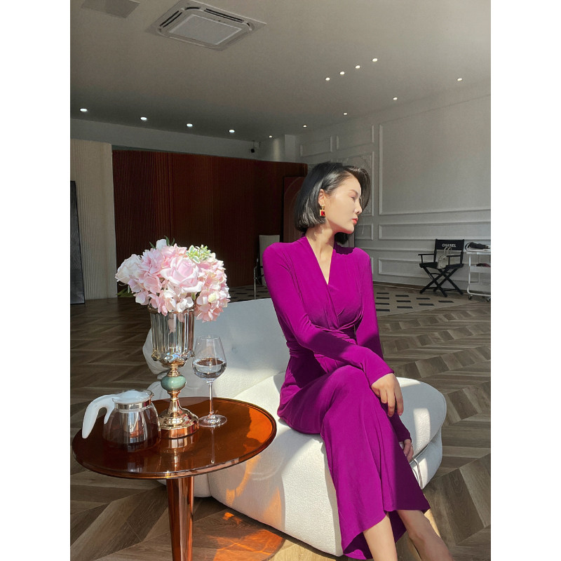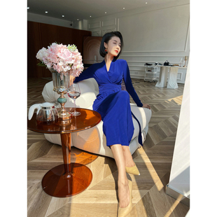 V领拉链显瘦长袖 时尚 赫本风通勤舒适气质连衣裙 秋冬季 2025年新款