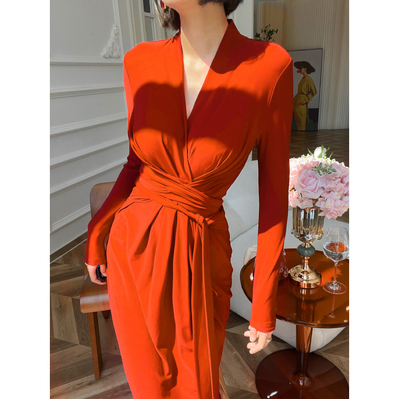 小香风连衣裙女2025冬季 红色御姐感包臀裙抹胸裙子高级感内搭 新款