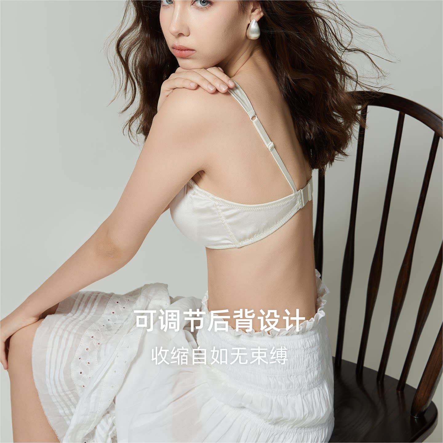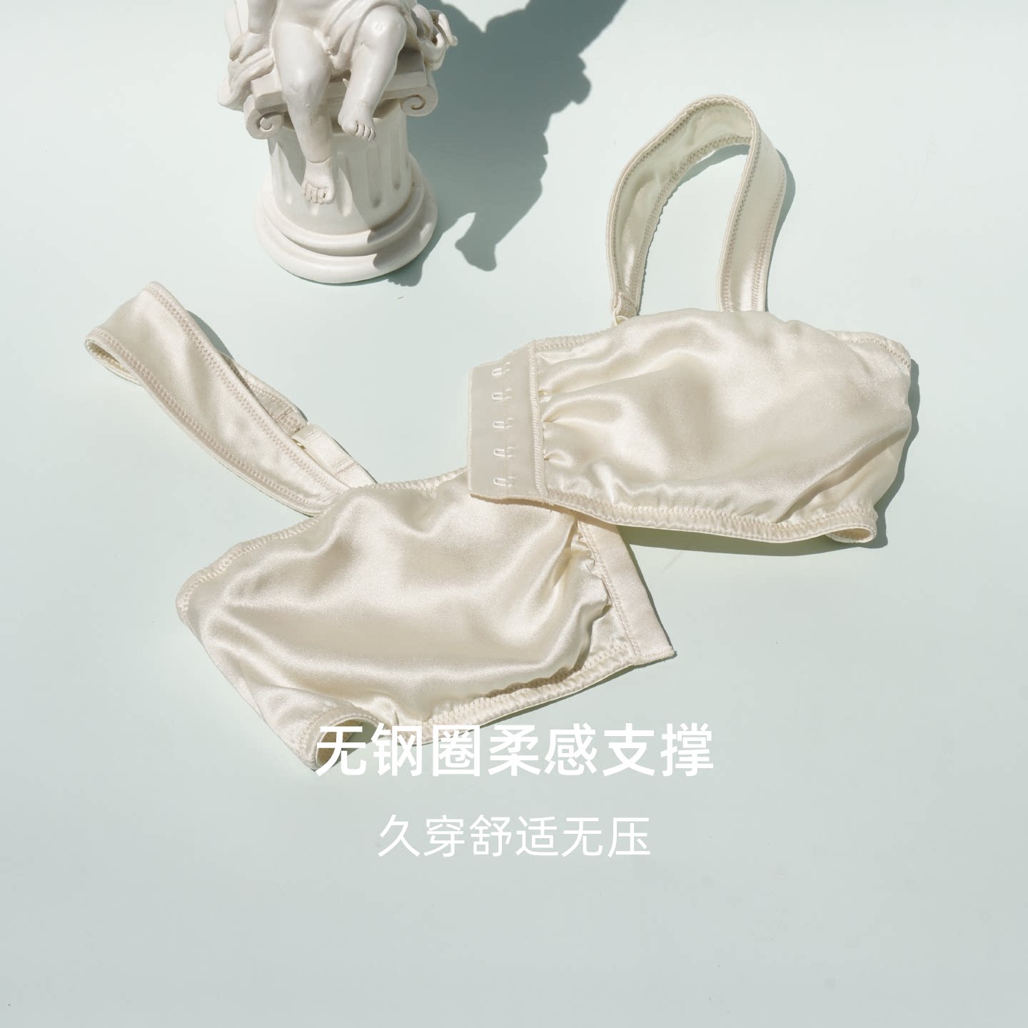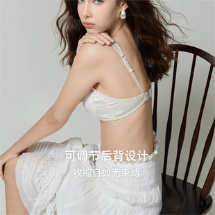 GUAGUALADY 女士无杯垫文胸无钢圈 前扣真丝内衣6A级桑蚕丝法式