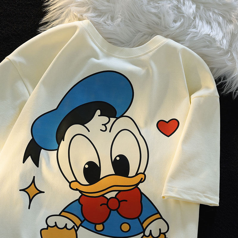 多巴胺情侣装 新款 甜美小众上衣 t恤女夏季 联名卡通潮牌唐老鸭短袖