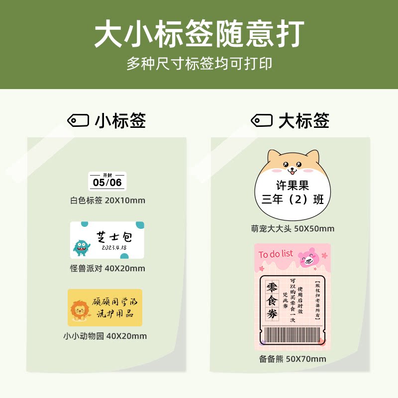 硕方T50plus家用标签打印机卡通标签大尺寸彩色小型名字贴透明贴标签打印智能小型打印机条形码 不干胶标签机