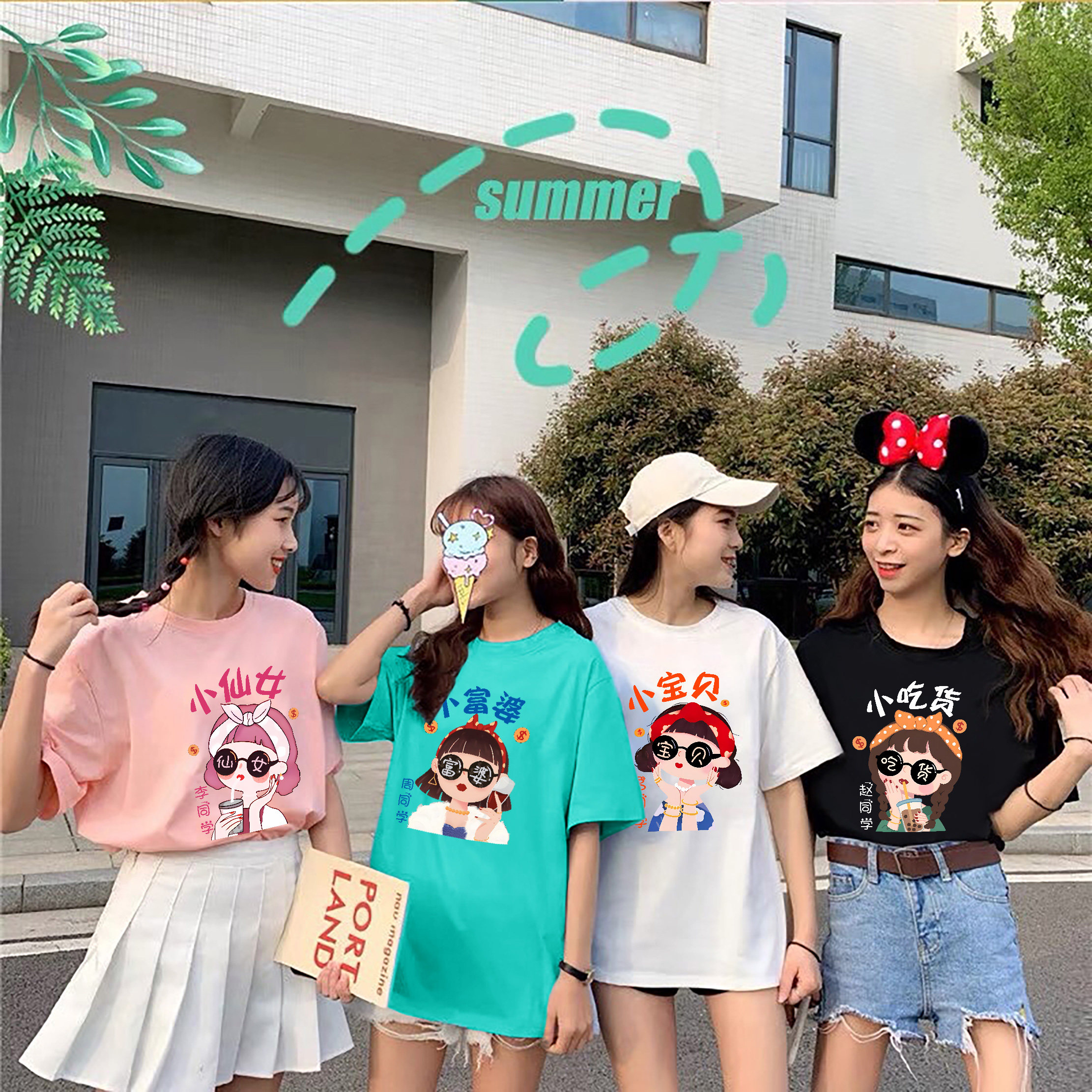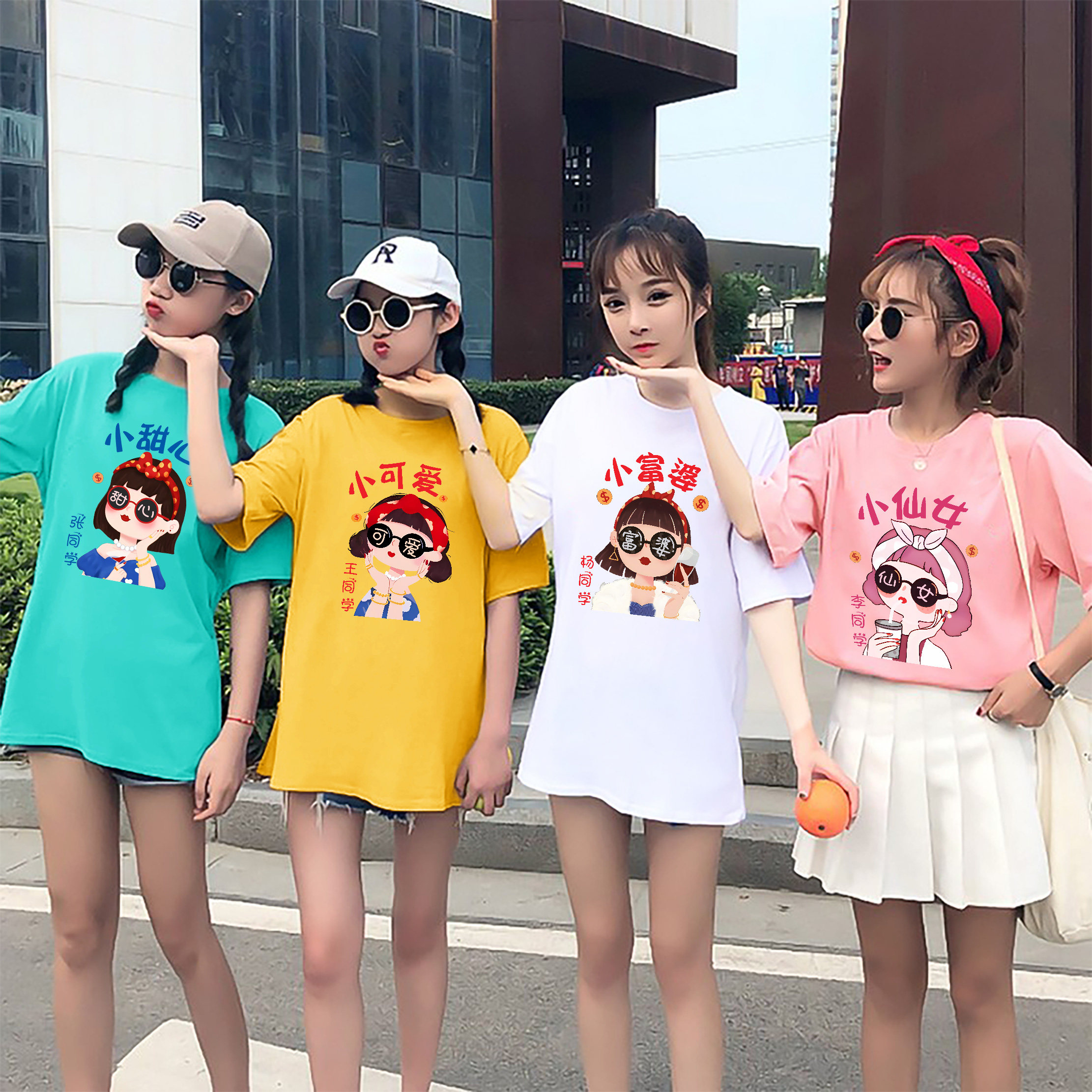 工作服班服短袖 团队文化衫 定制 t恤姐妹套装 新国潮脸谱彩色闺蜜装