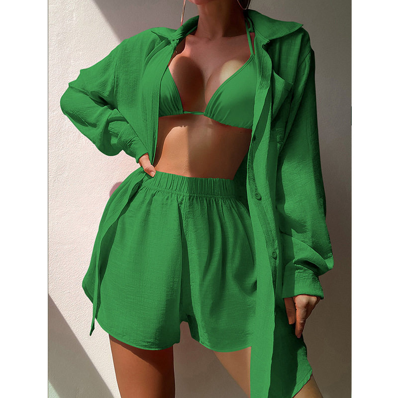 2023新款 沙滩度假衬衣两件套性感宽松防晒休闲沙滩泳衣比基尼罩衫