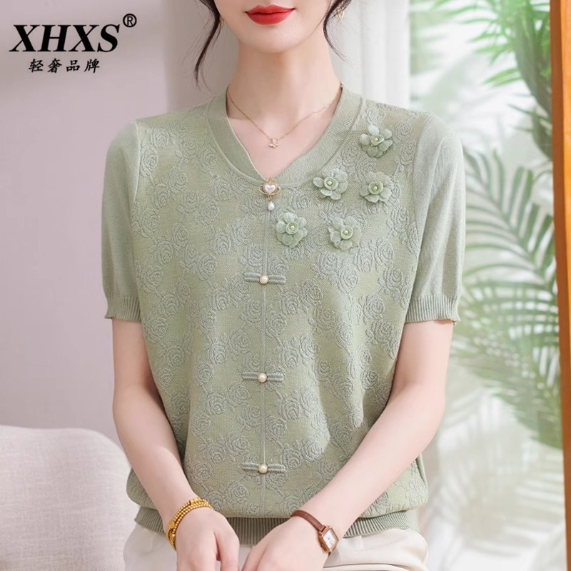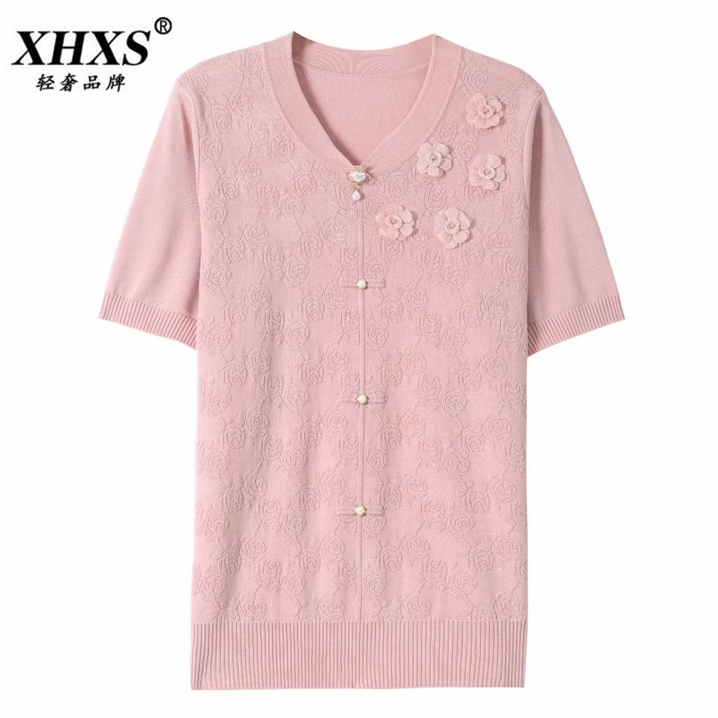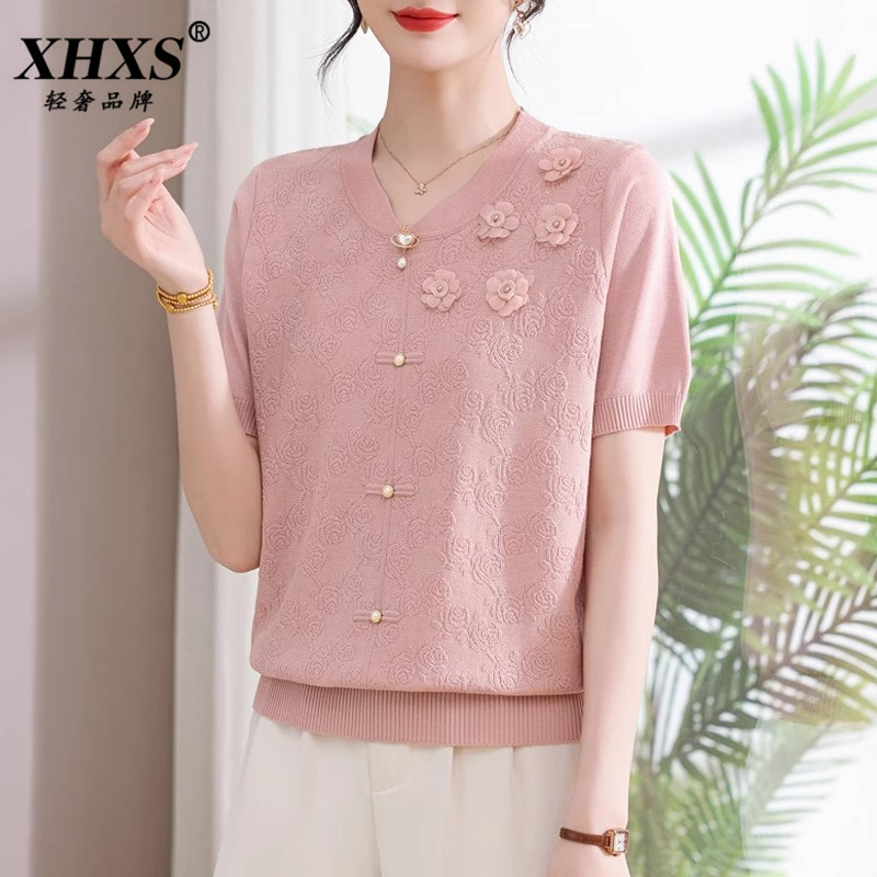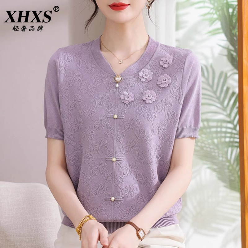 时尚 中年女冰丝减龄上衣套装 短袖 2025新款 T恤小衫 年轻妈妈夏装