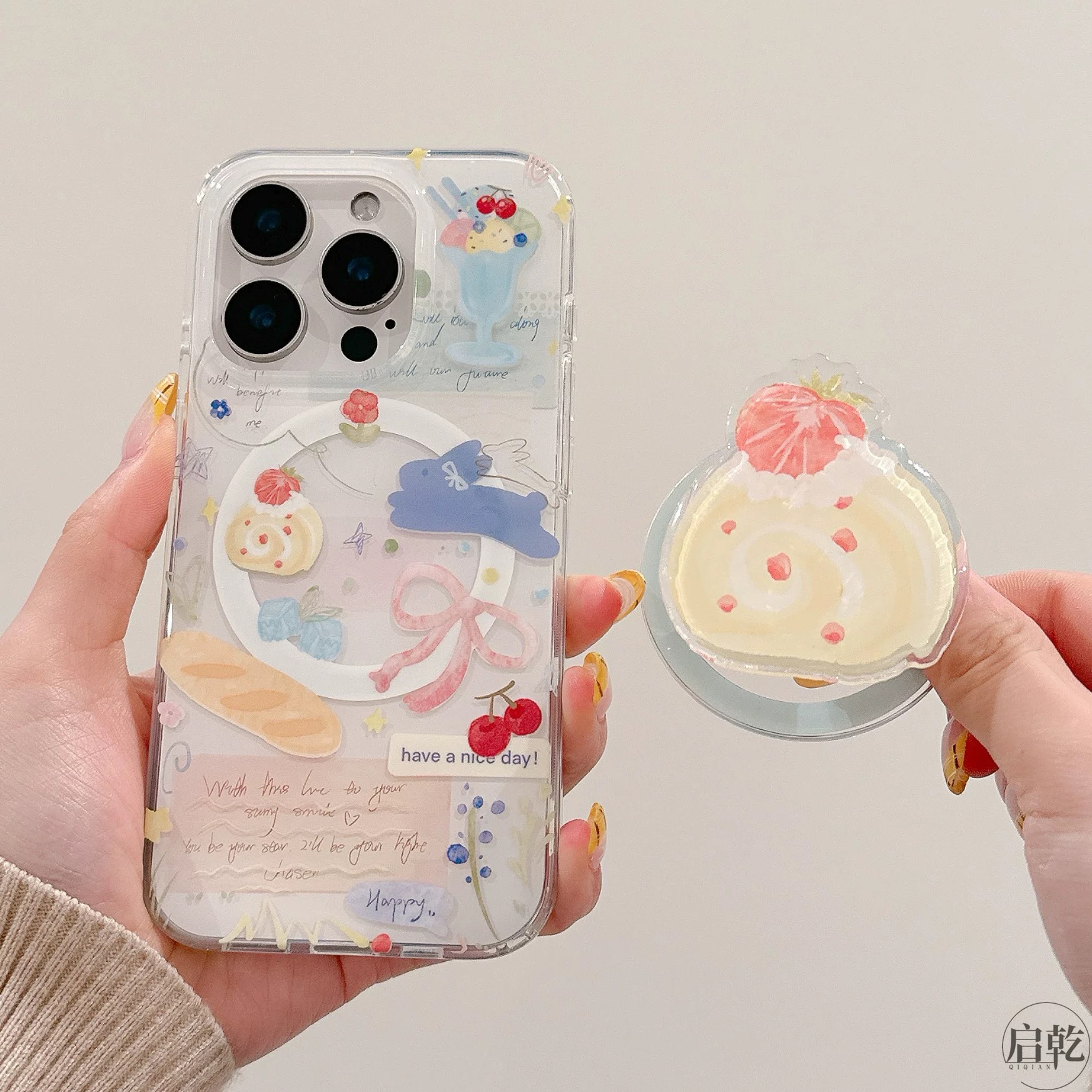 畅玩50plus软套女款 磁吸支架适用华为荣耀100美食90华为magic6pro 30治愈草莓瑞士卷40i X20 80GT手机壳70se