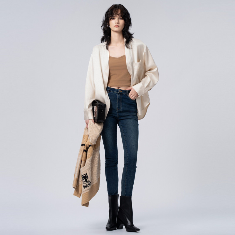 九分拉腿深冬加绒白牛神裤 韩女牛仔裤 超显瘦修身 靴靴穿搭伴侣