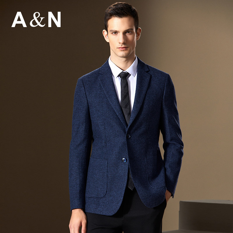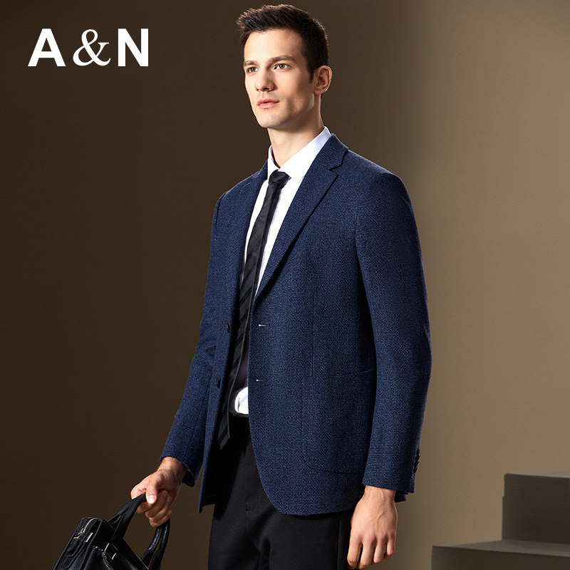 ELI 真丝羊毛混纺平驳领釉面牛角扣休闲西服外套男春秋 杜松