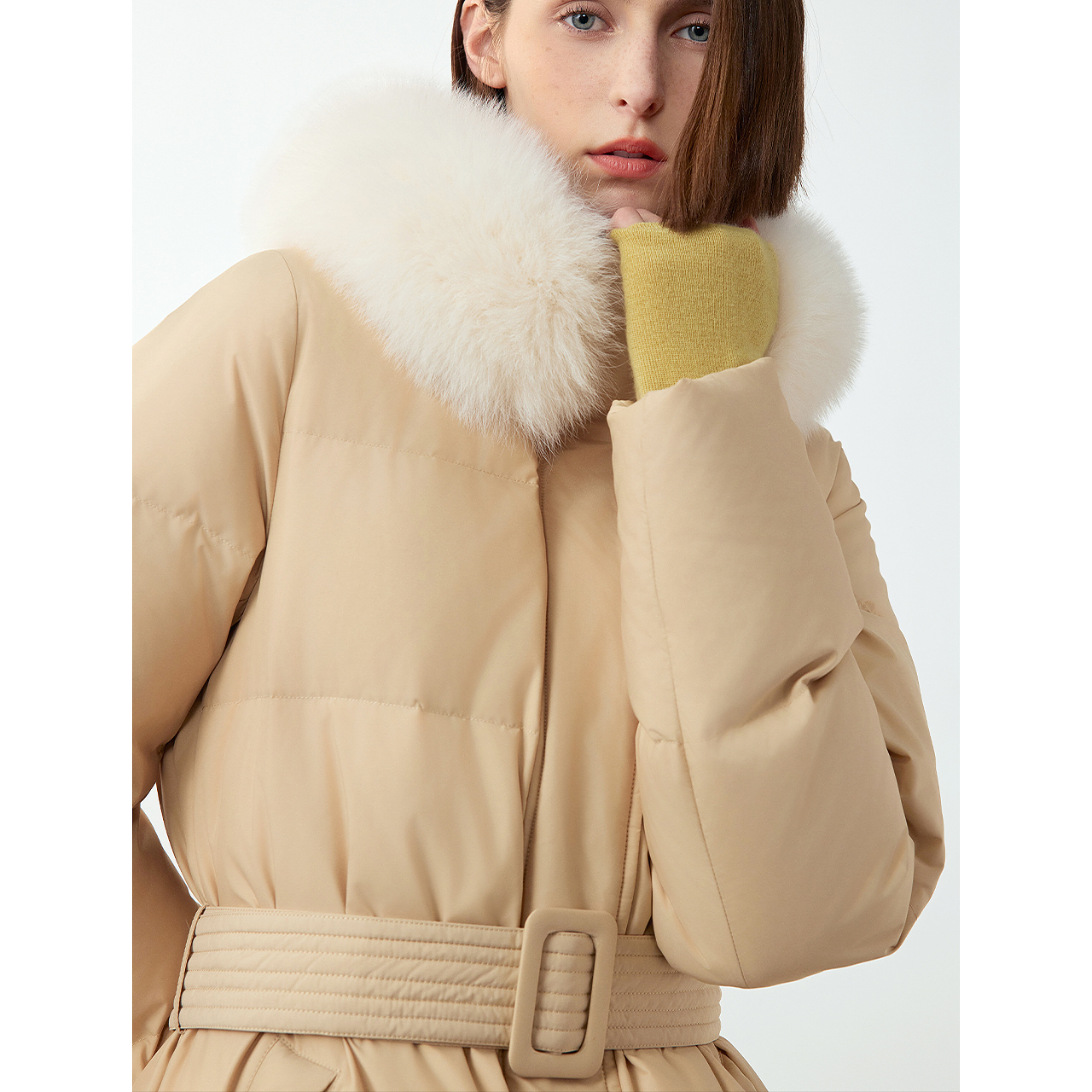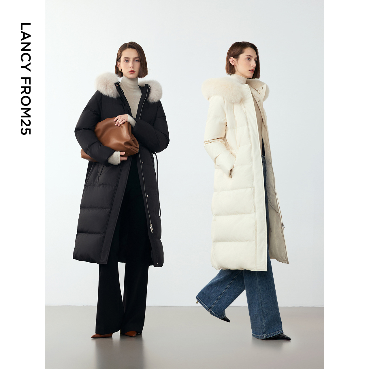 新款 朗姿霍尔多巴吉鹅绒狐狸毛领女2024冬季 羽绒服 王楚然同款