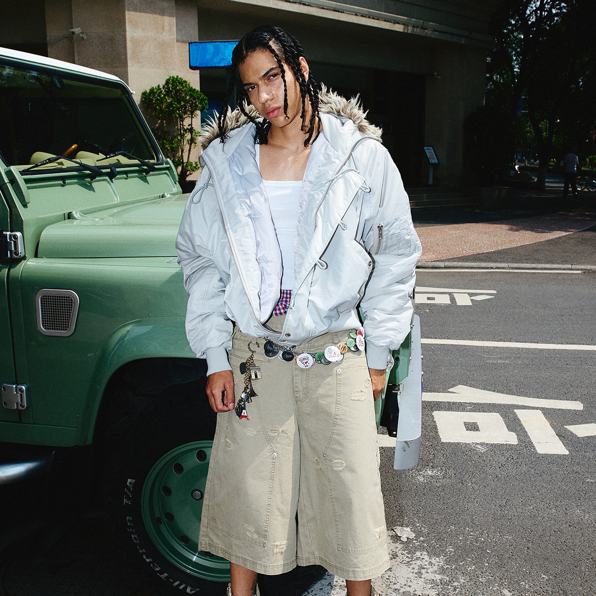 裤 CulturE小众复古做旧牛仔套装 夹克外套废土重磅拉链大口袋工装