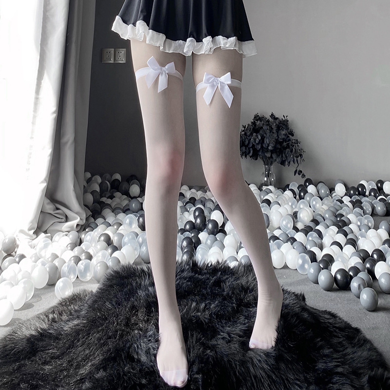 超薄黑丝甜美可爱性感过膝高筒大腿袜Lolita蝴蝶结jk长筒丝袜女