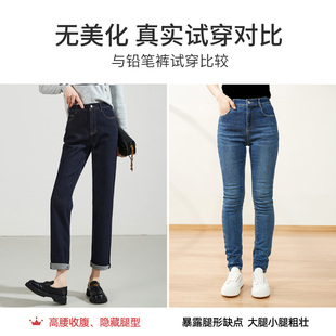 百搭显瘦弹力提臀小脚裤 女秋冬新款 女潮 蜜桃臀高腰铅笔牛仔裤 时尚