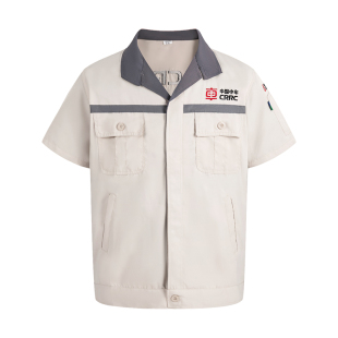 米白色南车工装 套装 青岛车间劳保服 中国中车工作服男长袖 春秋季