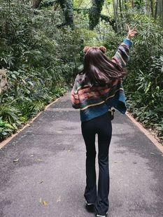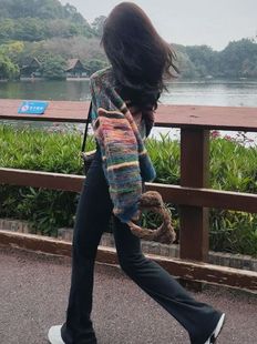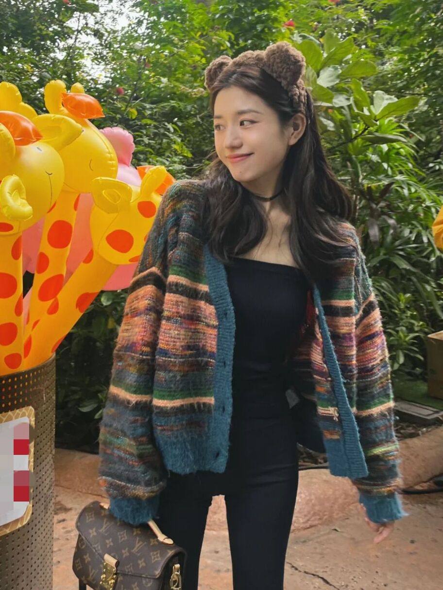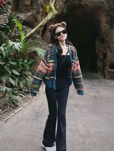 新款 女2025秋装 宽松单排扣针织外套 复古撞色条纹毛衣开衫 超重工