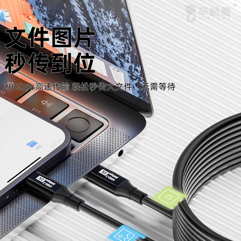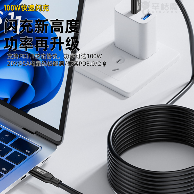 USB3.2全功能加长typec数据线PD100W快充20Gbps高速传输8K视频适用华为苹果iPhone15手机笔记本电脑兼容雷电3