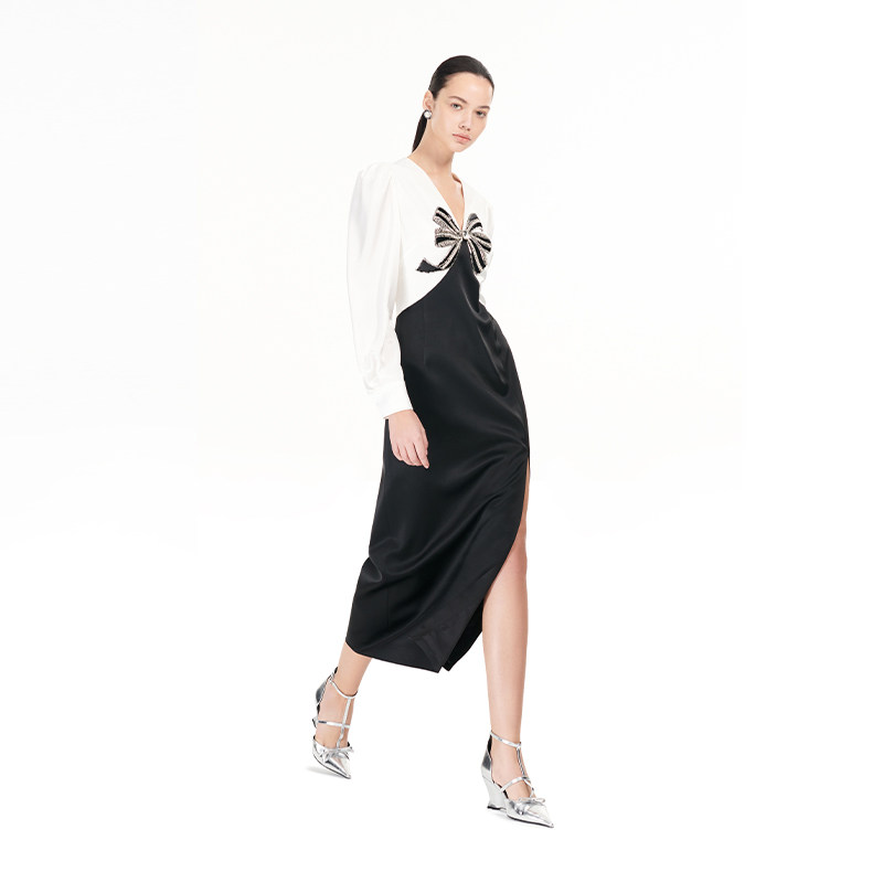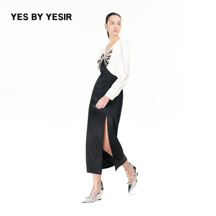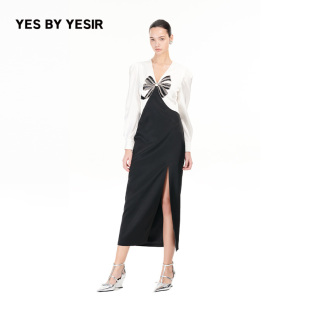 YES YESIR叶谦原创设计秋新重工镶钻蝴蝶结轻礼服连衣裙