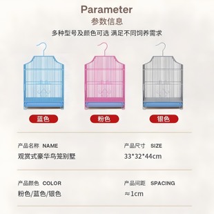 虎皮鹦鹉鸟笼绣眼牡丹文鸟大号别墅小号鸟笼子金属房顶造型观赏笼