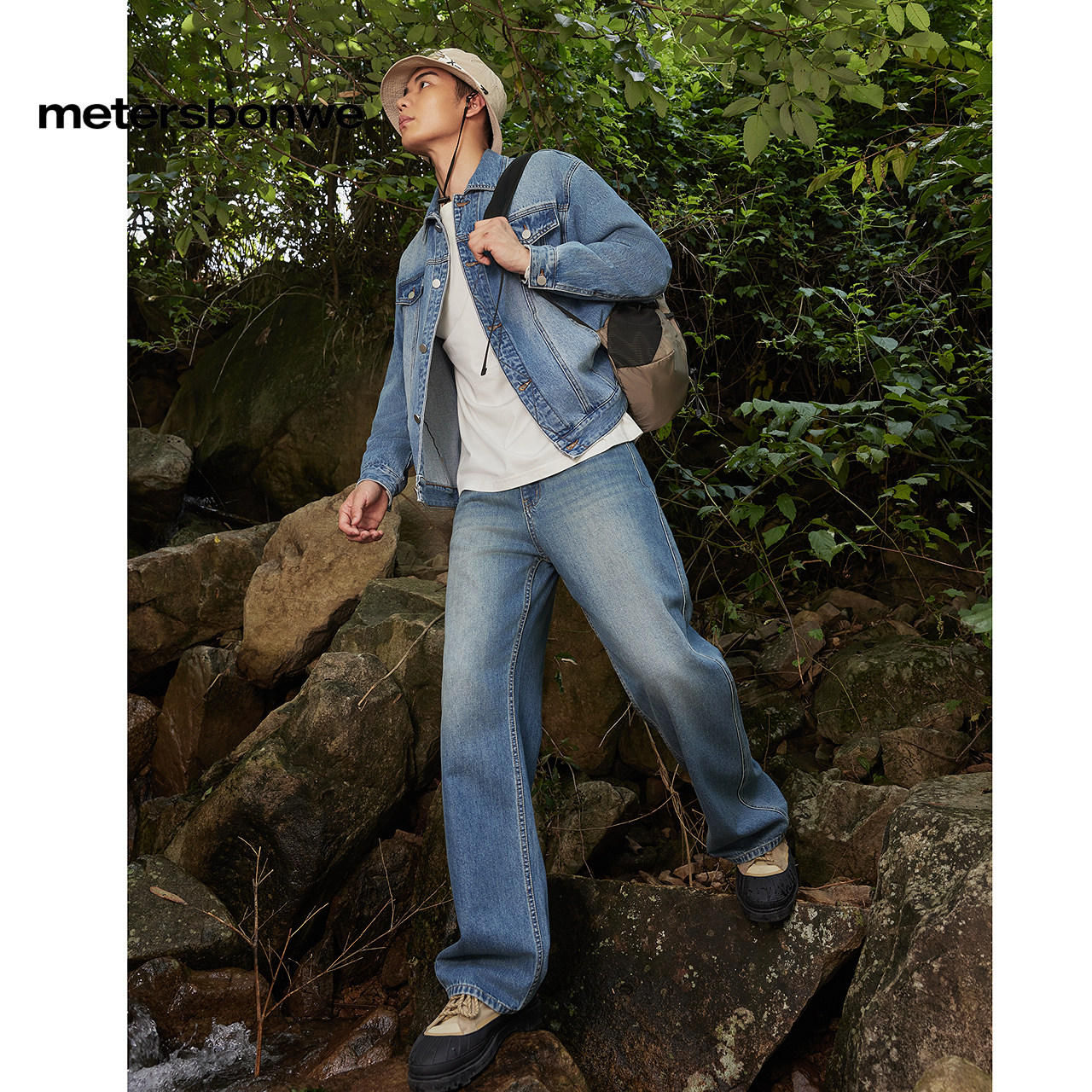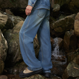 经典 新款 设计深色牛仔裤 潮流适休闲裤 美特斯邦威直筒裤 修身 男春季