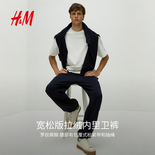 抽绳慢跑束脚长裤 柔软舒适宽松简约运动裤 1012056 休闲裤 HM男装