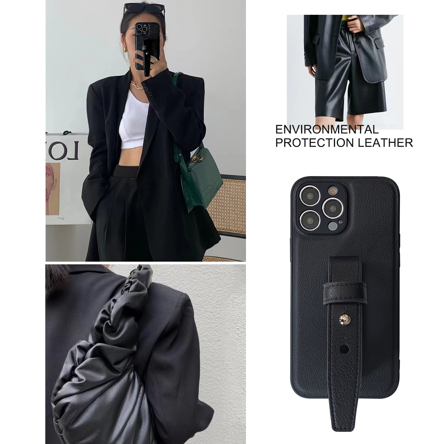 经典 15系列全包便携保护套 哑黑荔枝皮革适用苹果17promax精孔腕带手机壳复古气质简约小众高级感iphone16