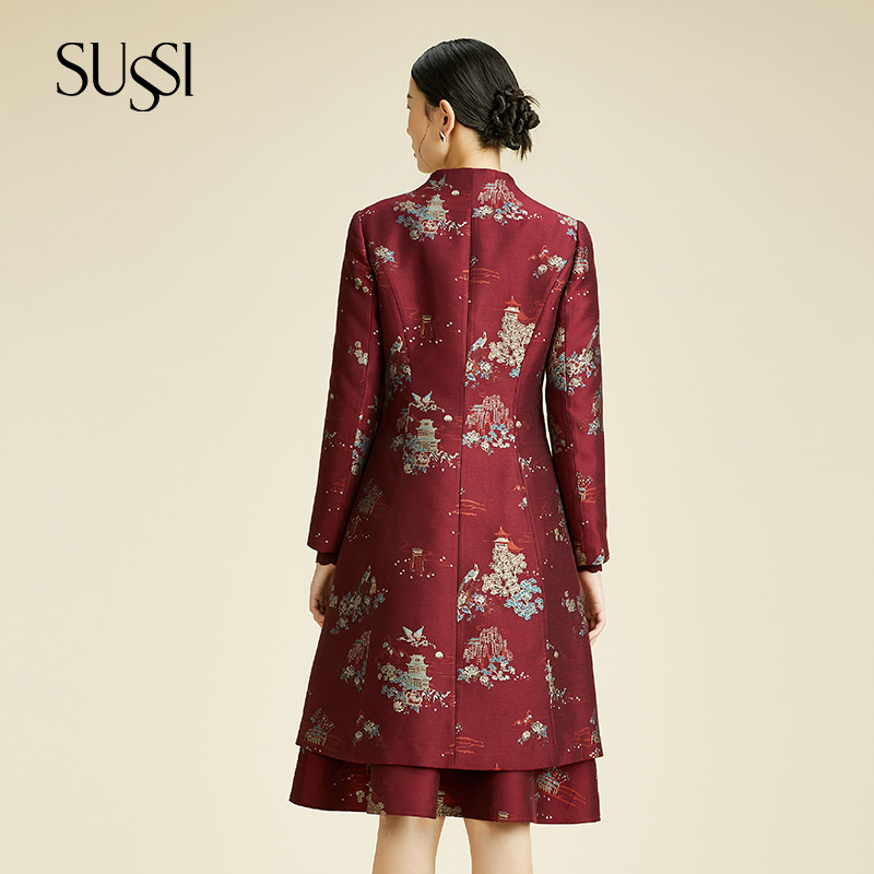 商场同款 新品 酒红提花妈妈婚宴礼服大衣外套 古色22冬季 SUSSI