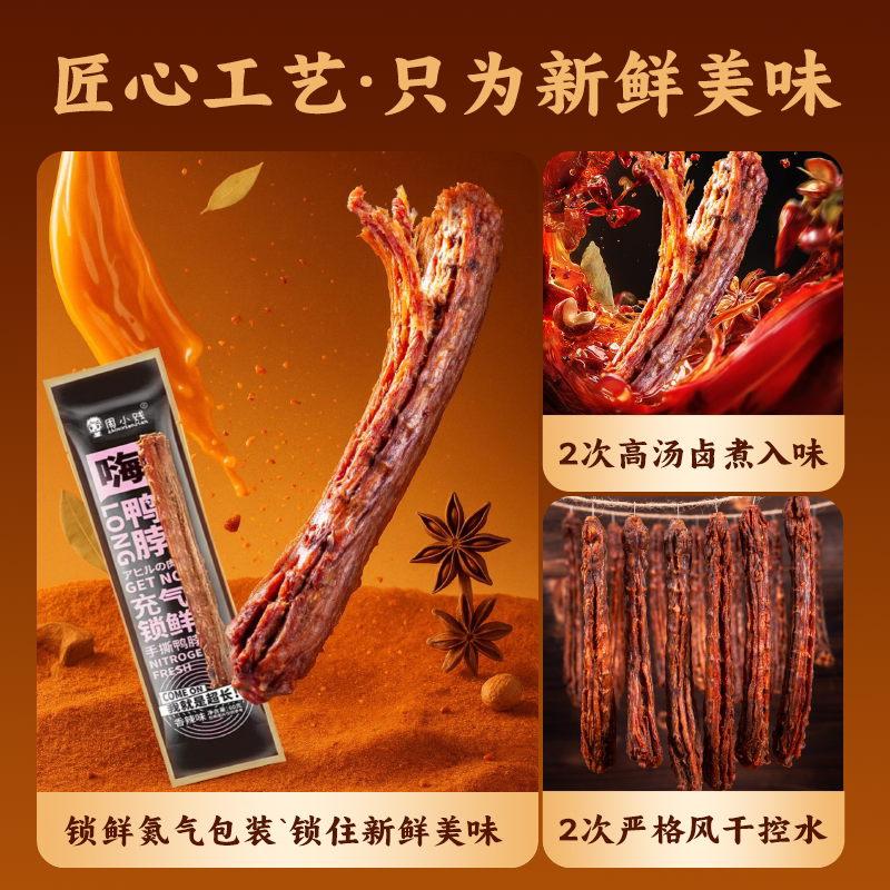 周小贱鸭脖65g 8袋整根手撕风干大鸭脖长脖肉类鸭货休闲零食 4袋