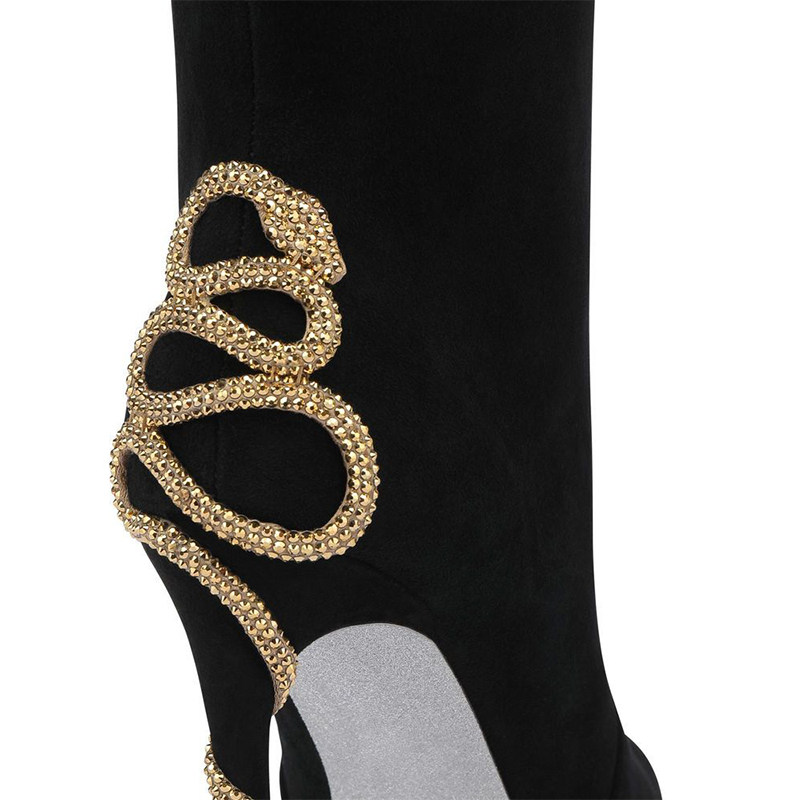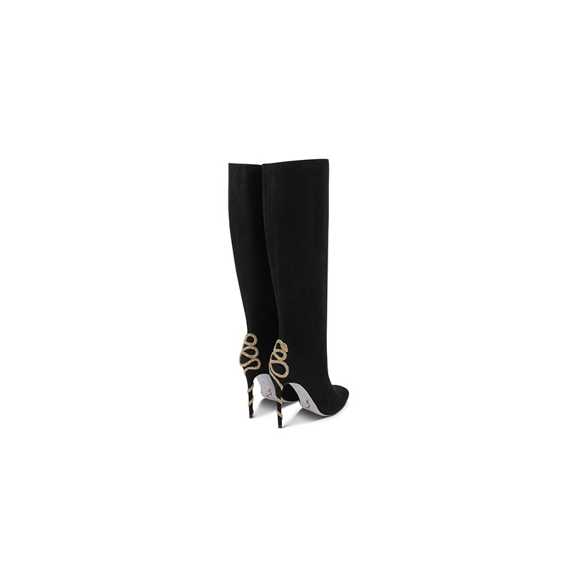 RENE CAOVILLAMORGANA系列黑色水钻及膝高筒靴
