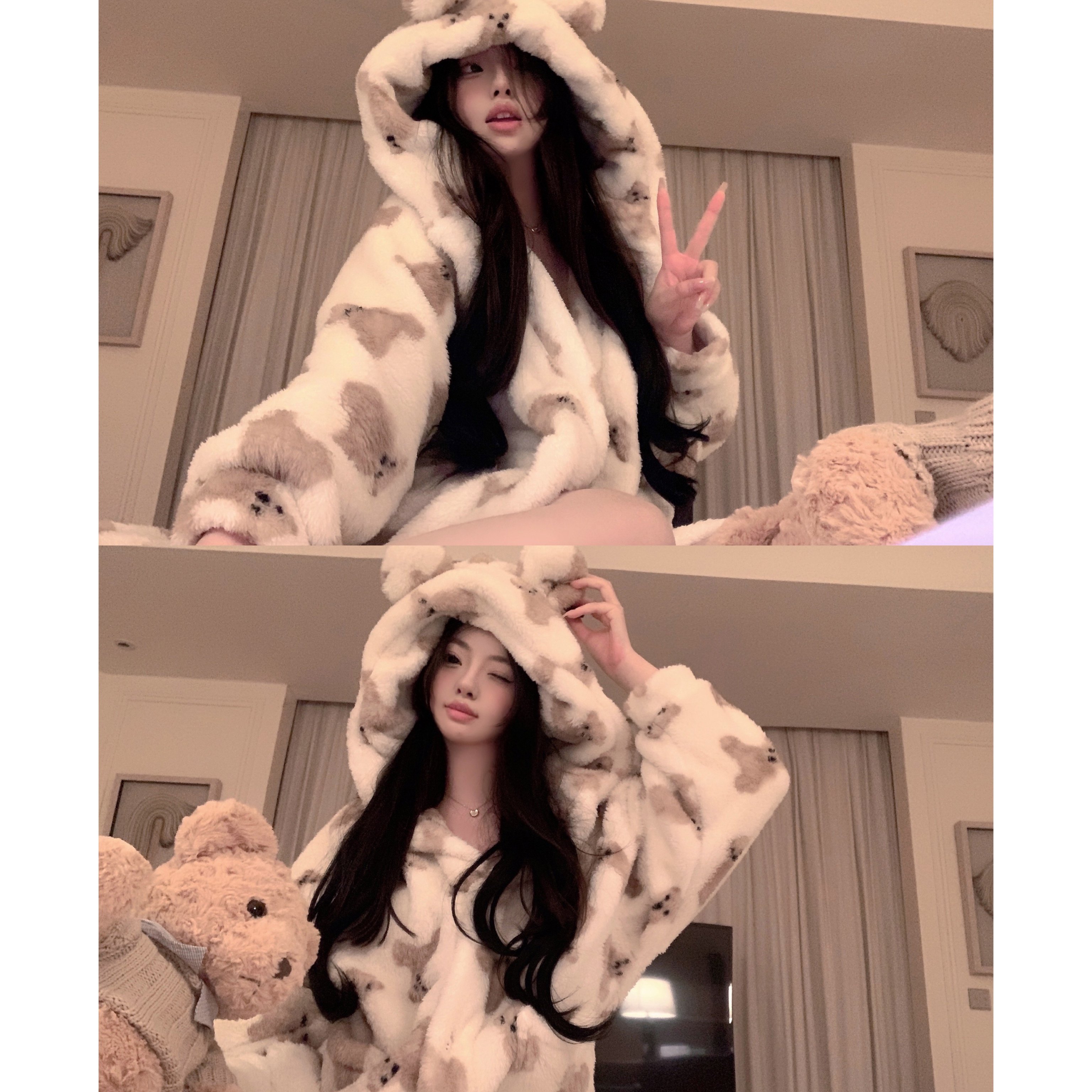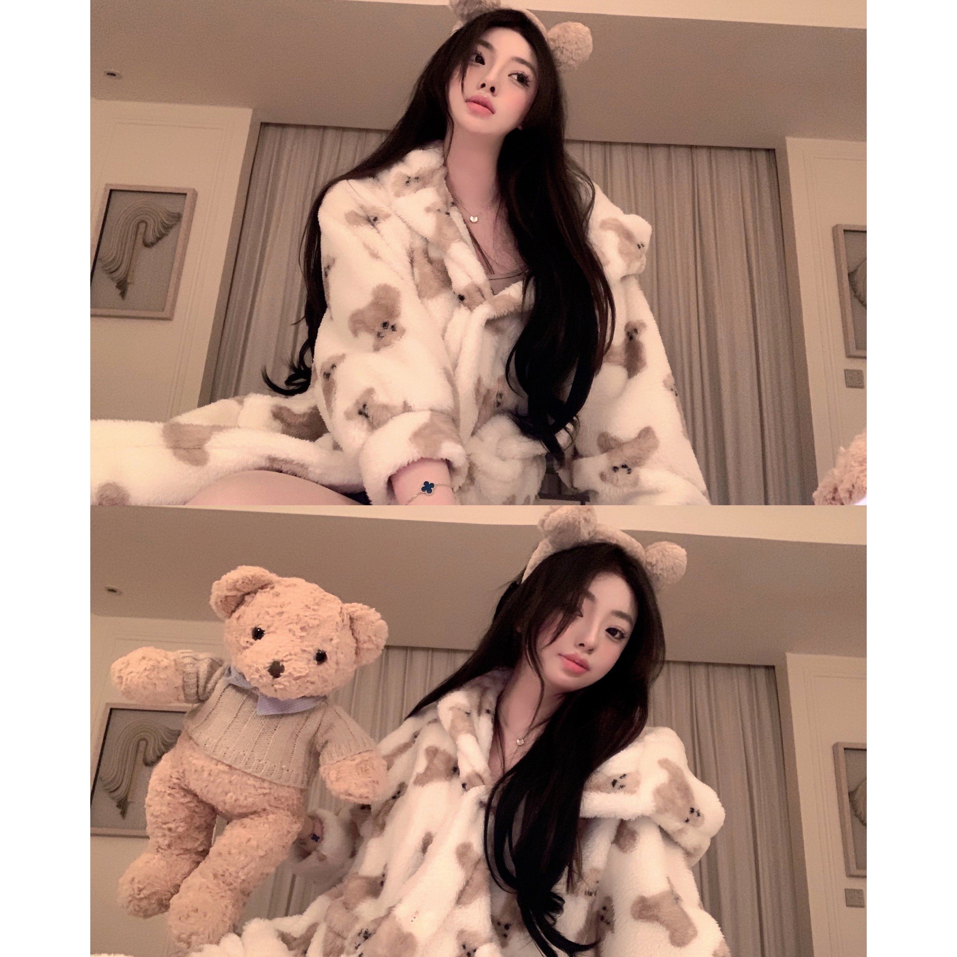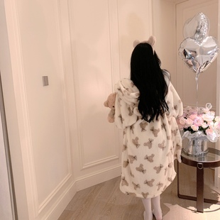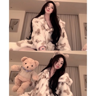 中长款 冬保暖睡衣家居服套装 睡袍毛绒浴袍加厚情侣款 三层加厚