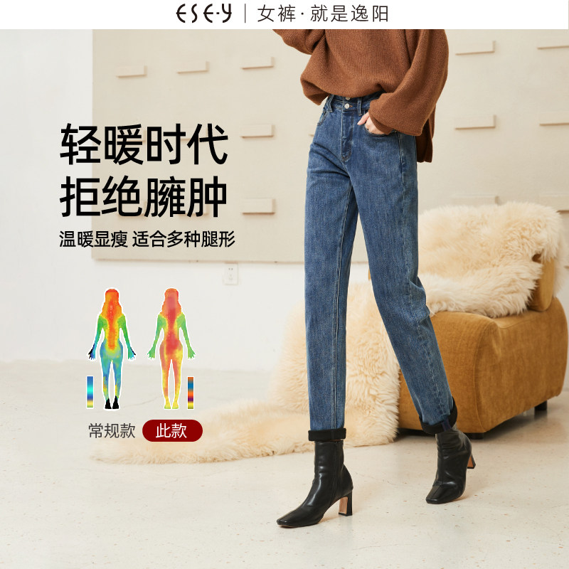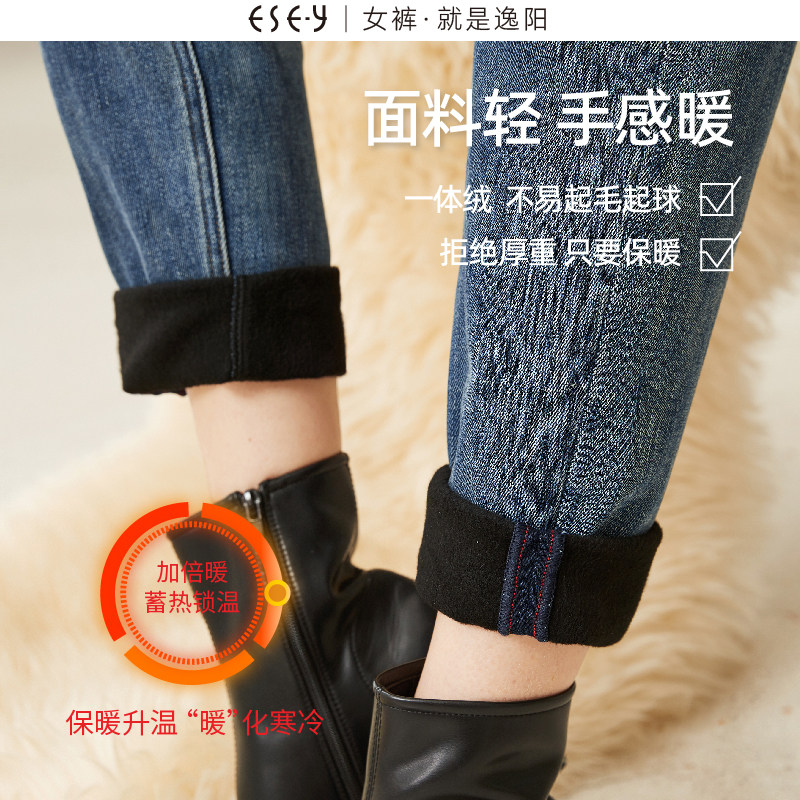 铅笔裤 弹力百搭修身 冬加绒 女2025春秋新款 黑色高腰紧身小脚牛仔裤