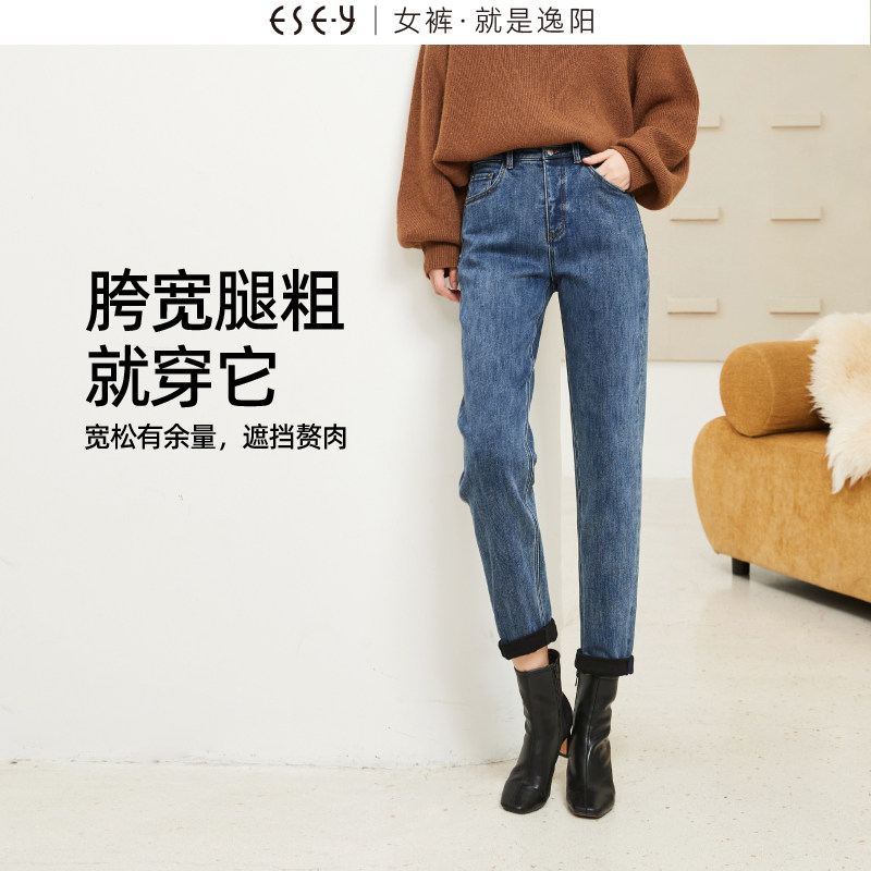 高腰提档修身 冬季 裤 子美式 白色加绒微喇牛仔裤 高街显瘦弯刀裤 男款