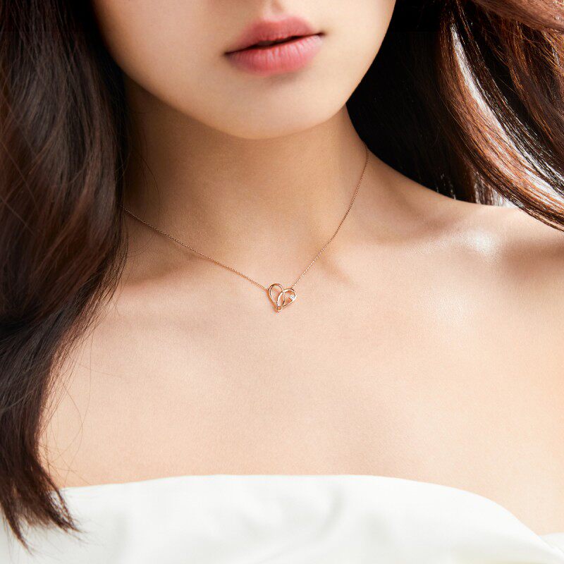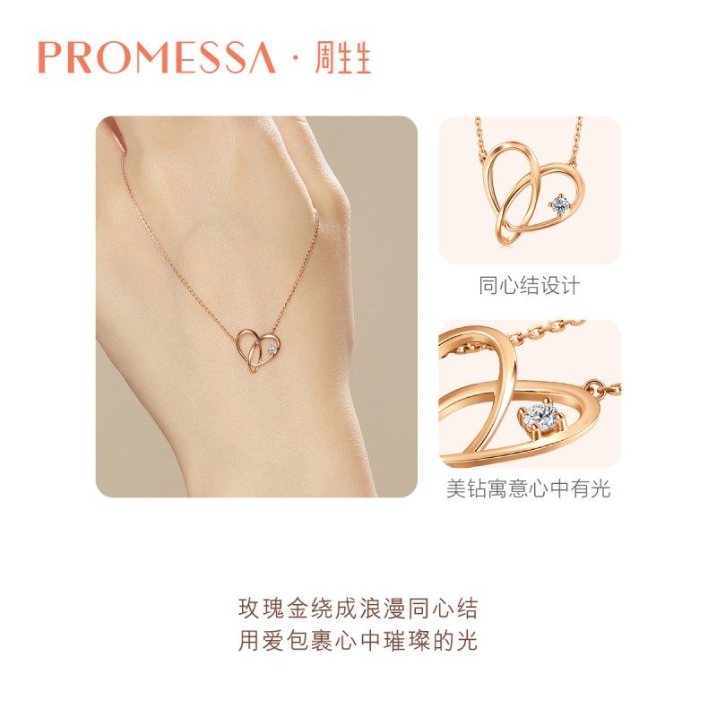 PROMESSA周生生同心系列心形18K玫瑰金钻石项链93203N