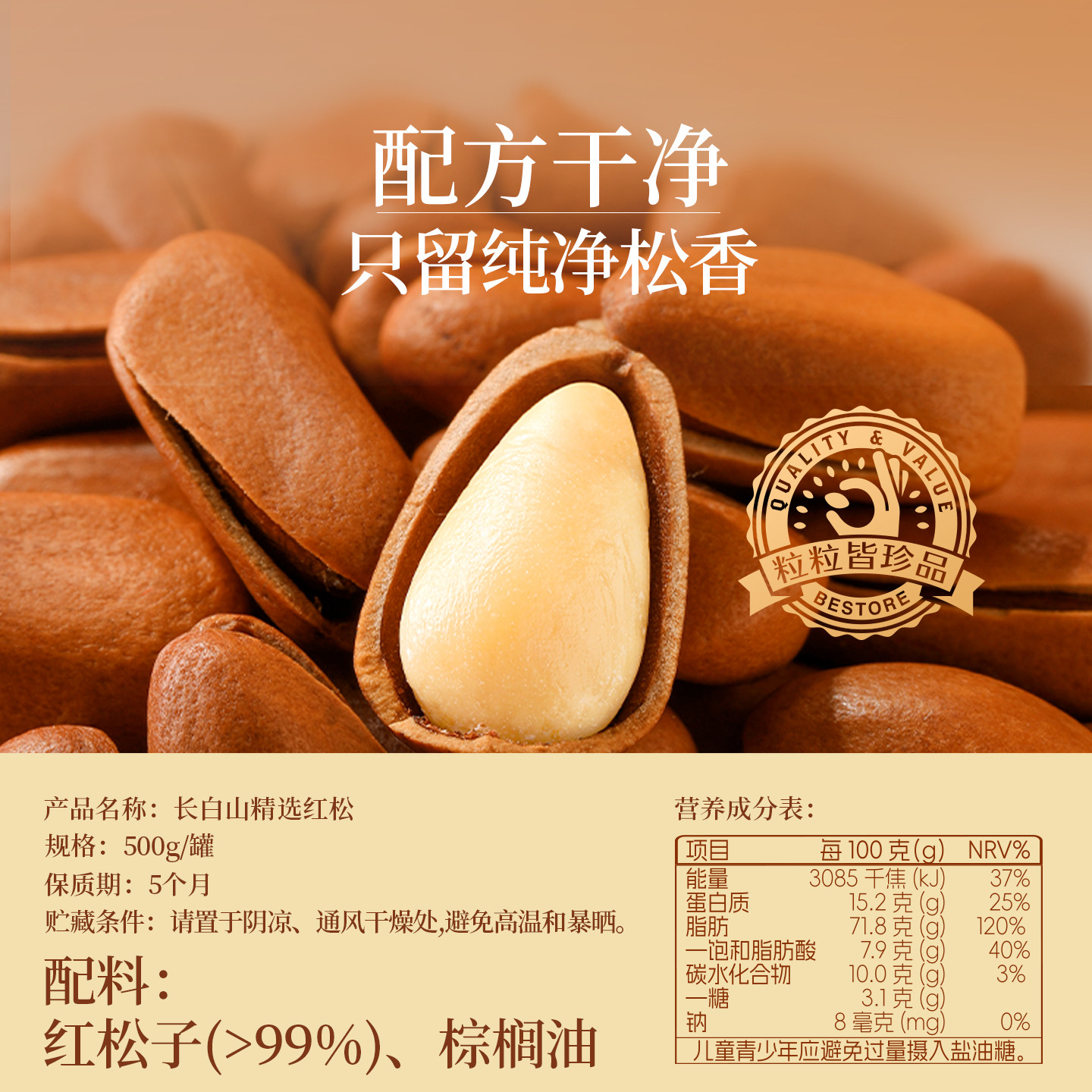 良品铺子2025东北松子500g红松新货大颗粒坚果罐装 年货零食干果仁
