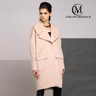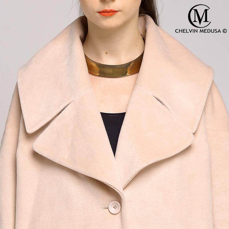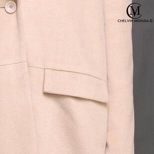 新款 复古马卡龙茧型长毛中长羊毛呢外套大衣 2019秋冬欧美走秀款