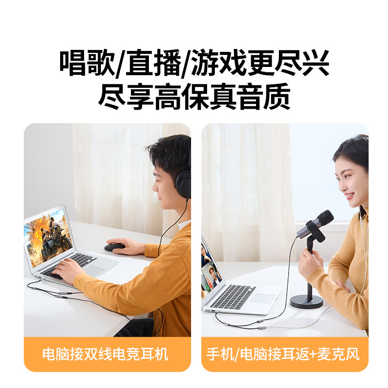 绿联耳机麦克风二合一转接头3.5mm音频线一分二话筒声卡笔记本台式 电脑转换器分线耳麦直播k歌游戏加长延长线