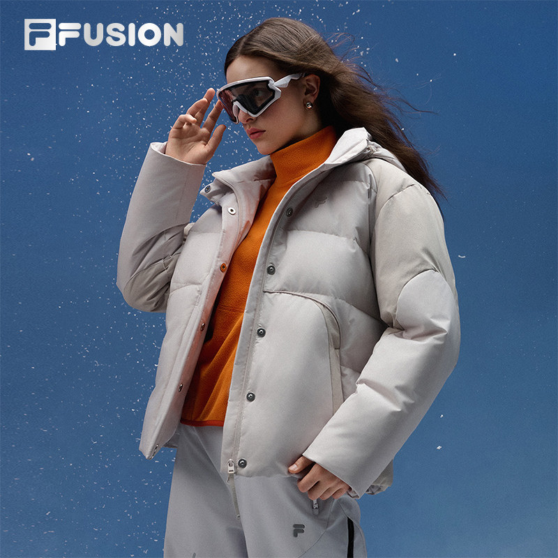 休闲宽松保暖连帽外套 新款 FILA FUSION斐乐潮牌羽绒服女2025冬季