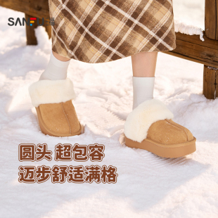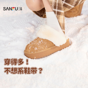 厚底一脚蹬女鞋 童趣简约包头毛毛鞋 845973 冬季 三福女毛拖鞋