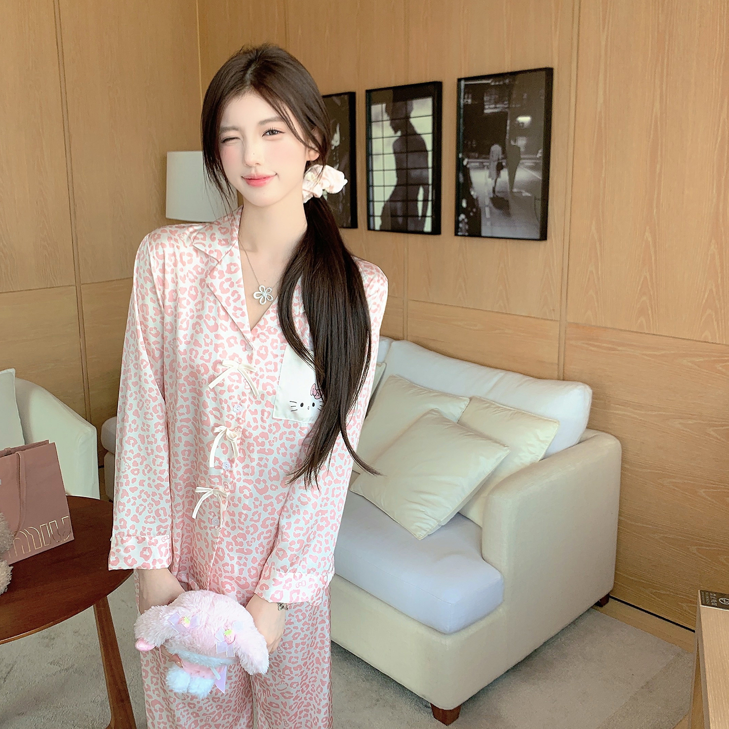 家居服 纯欲风2025新款 捞捞酱「小猫困困 」冰丝睡衣女性感春秋款