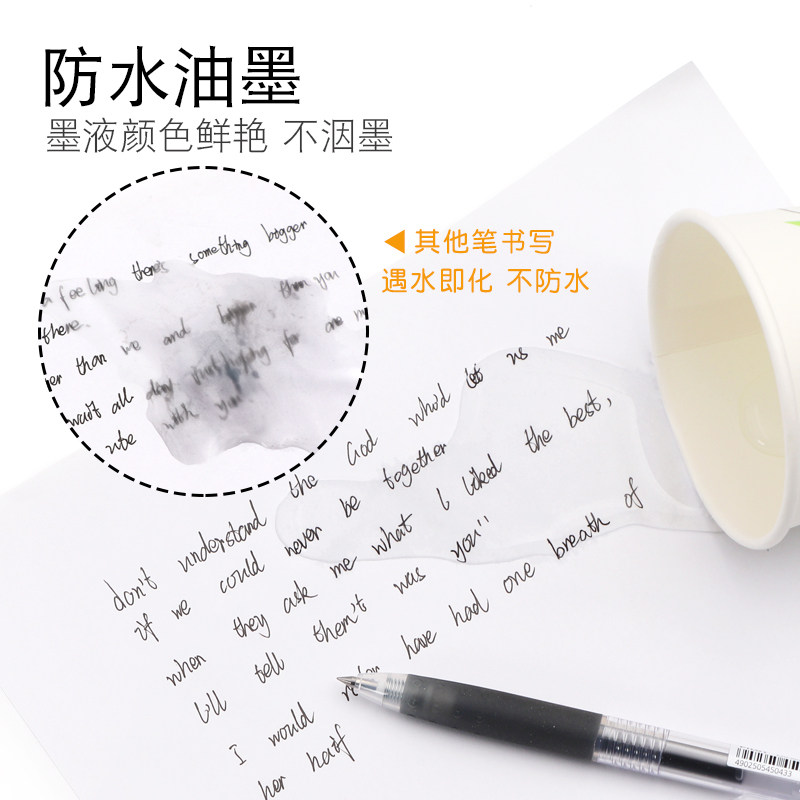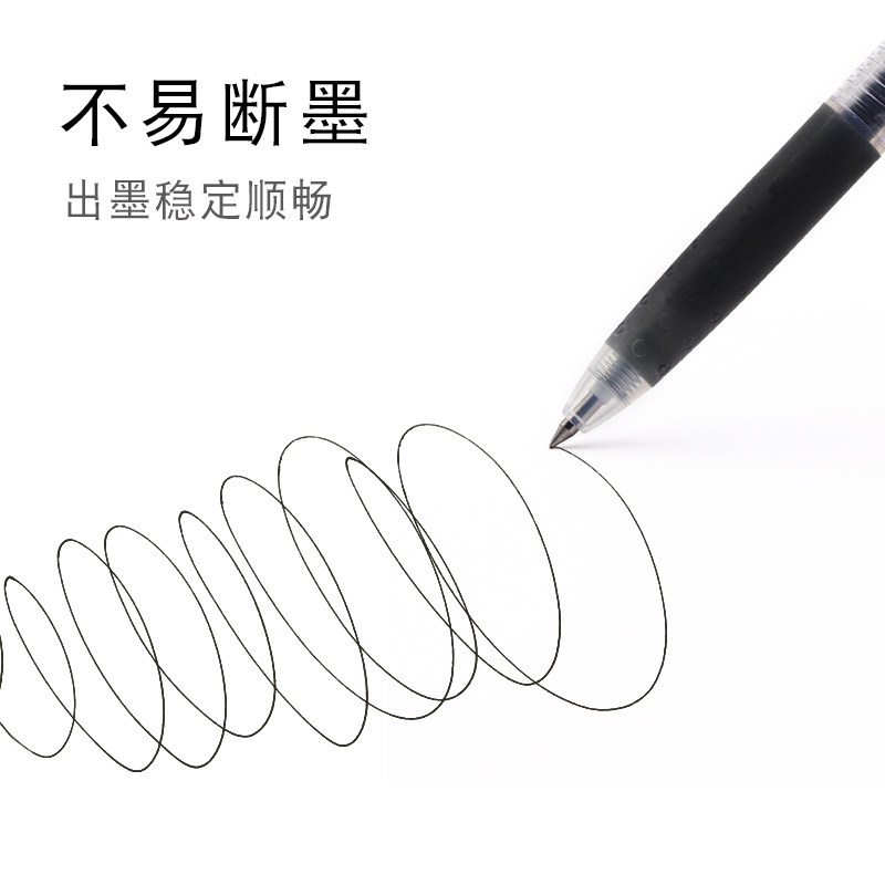得力按动笔中性笔签字笔黑色0.5mm按动水笔红笔学生用大容量按压