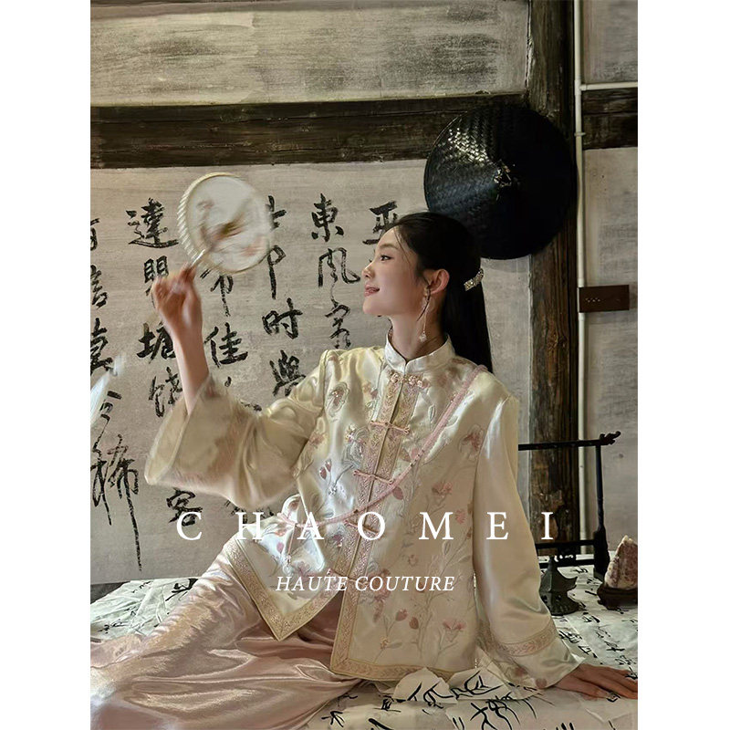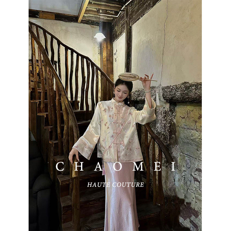 CHAOMEI 刺绣重工醋酸外套裙子套装 花信 轻国风女装 新中式 冯