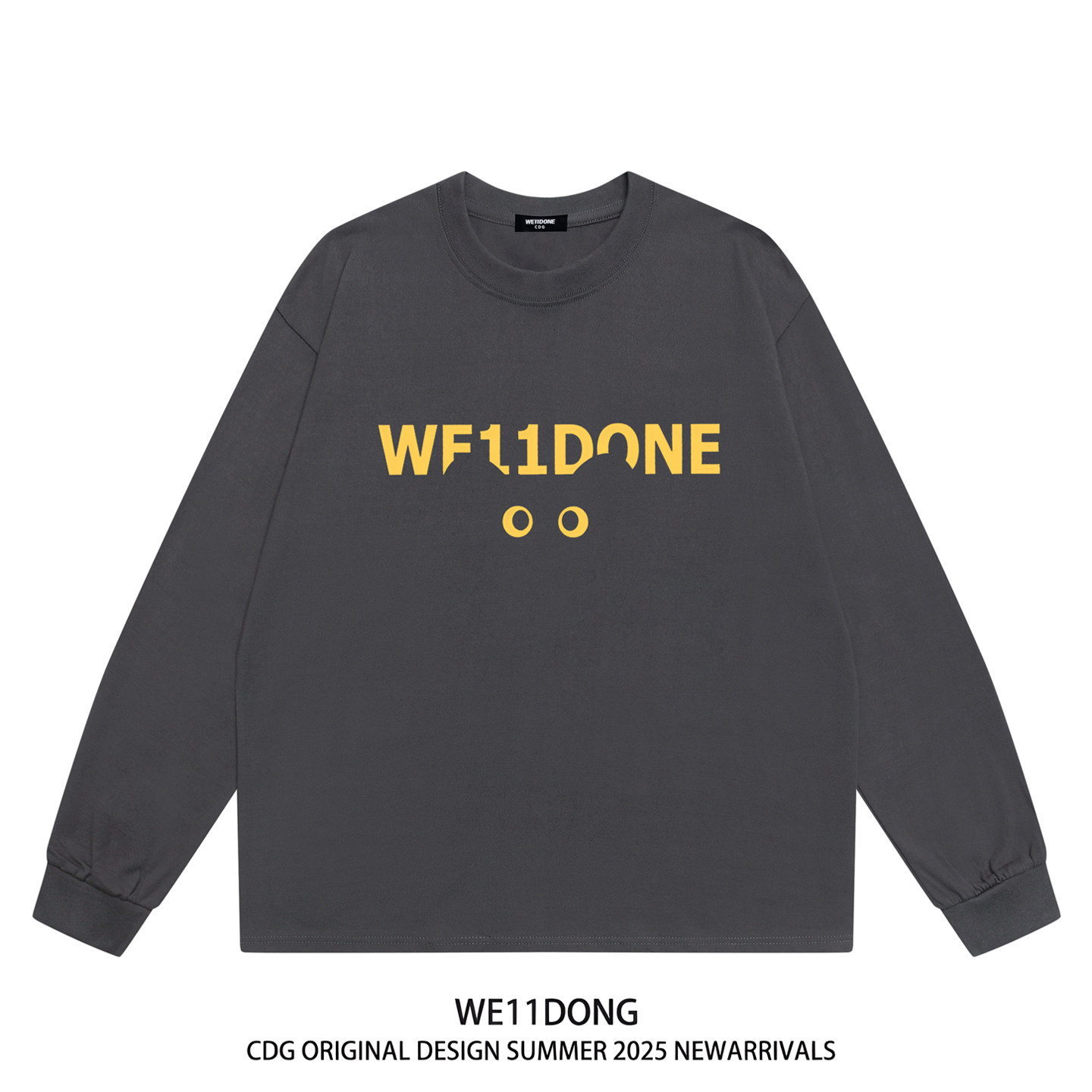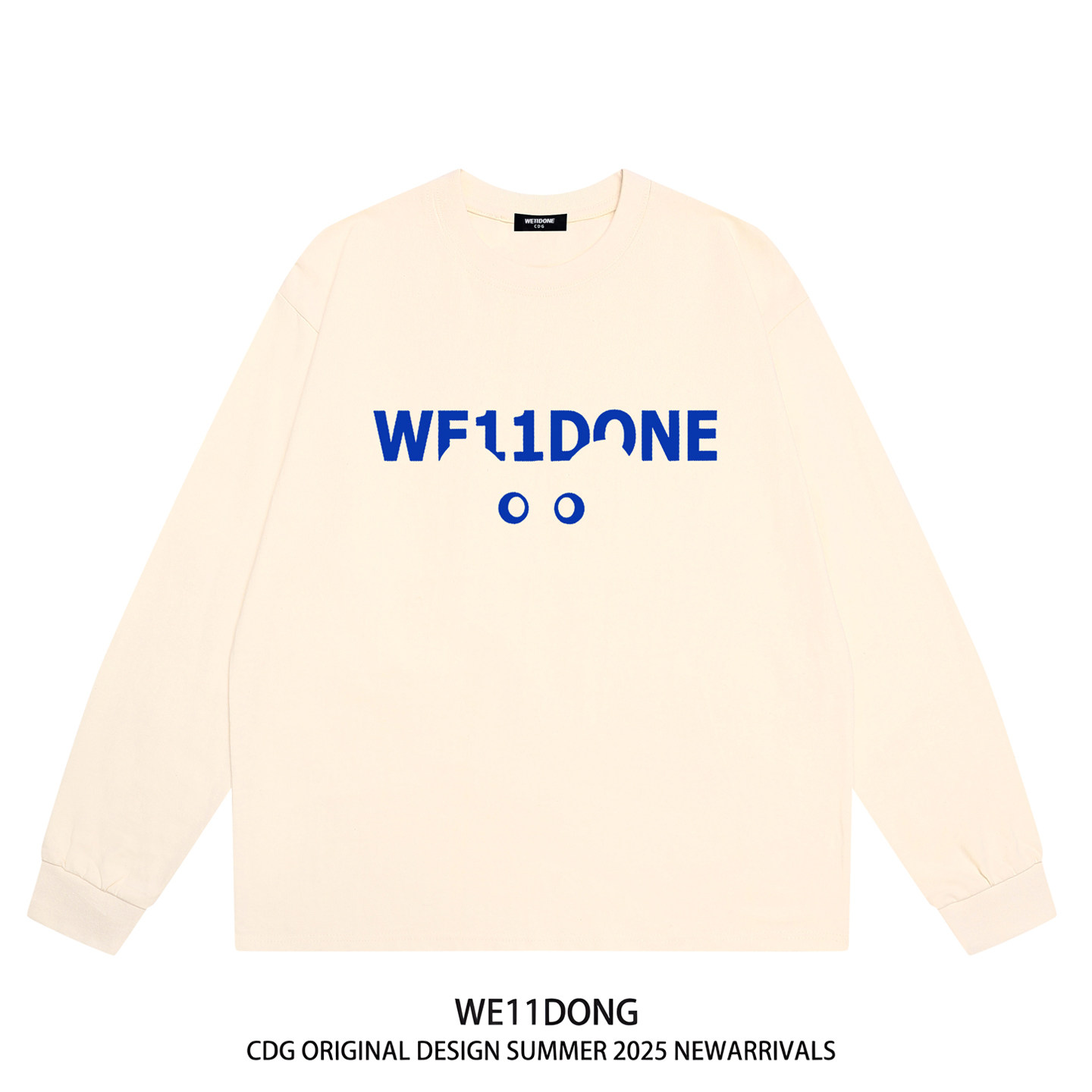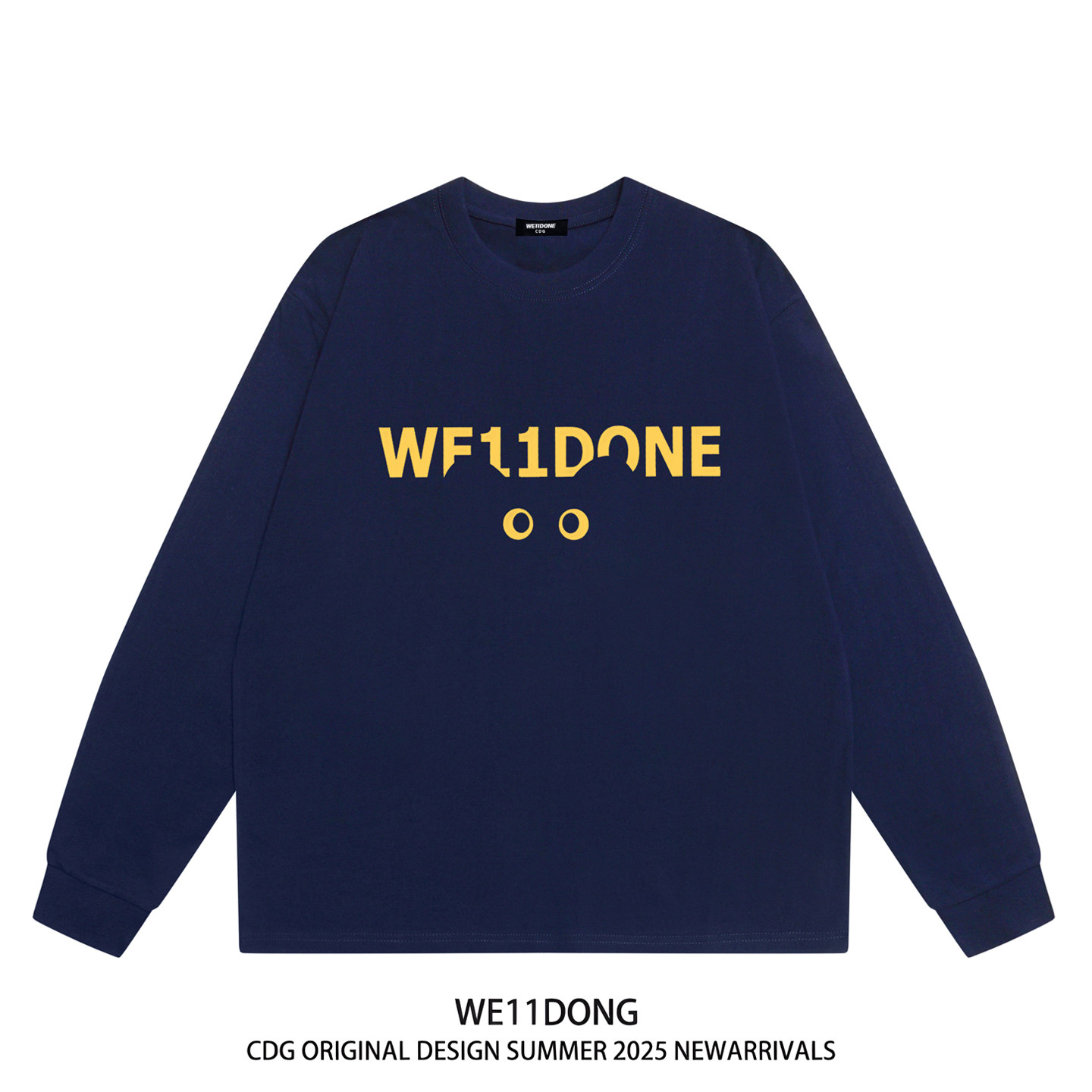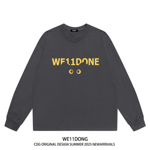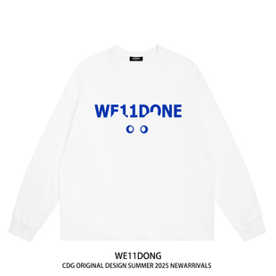 WE11DONE T恤男女 CDG潮牌WELLDONE卡通猫咪印花高街纯棉圆领长袖