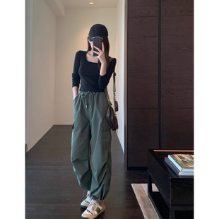 裤 版 女秋冬新款 直筒束脚裤 高腰休闲阔腿裤 工装 美式 型正 AMR