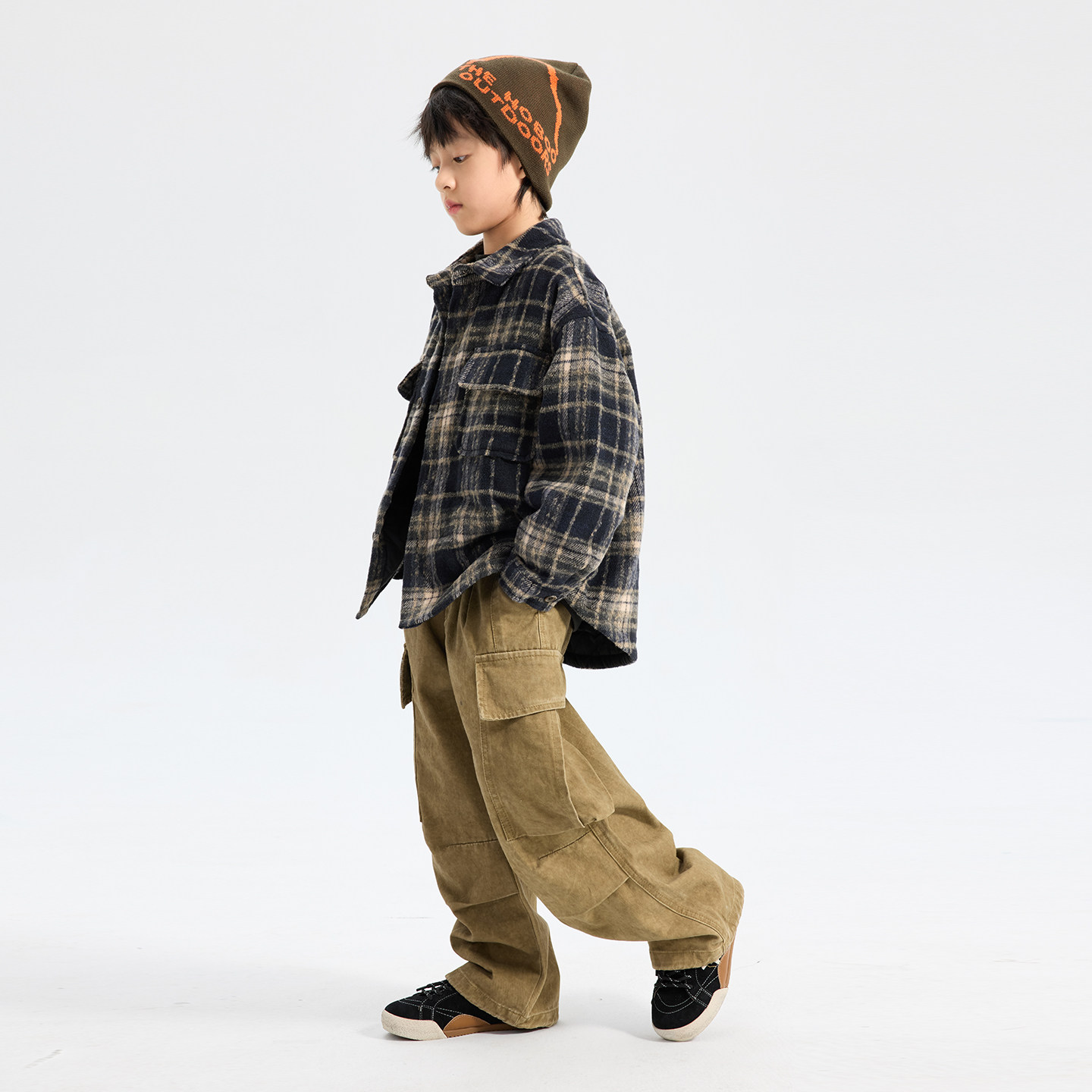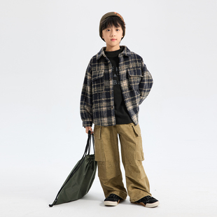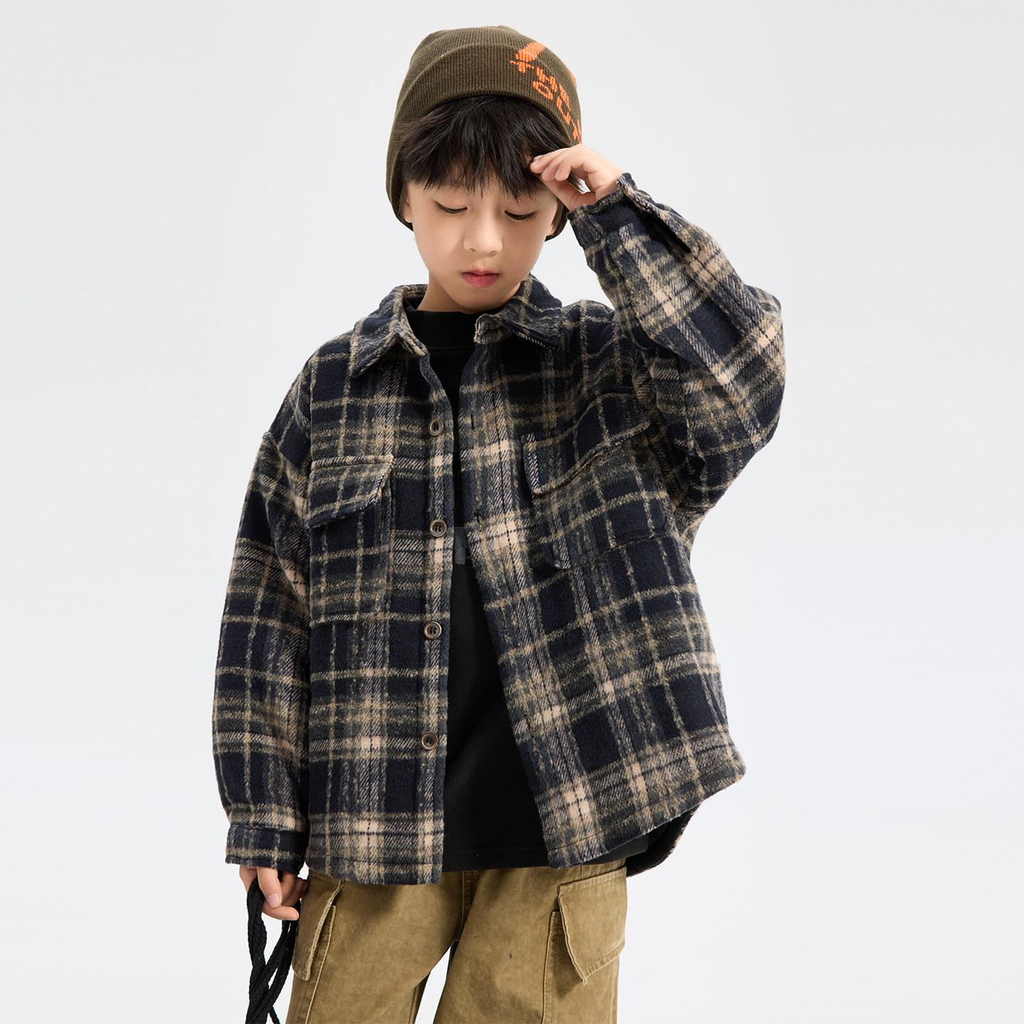 复古格纹大童儿童长袖 派町童装 新款 外套2025秋季 上衣时髦 男童衬衫