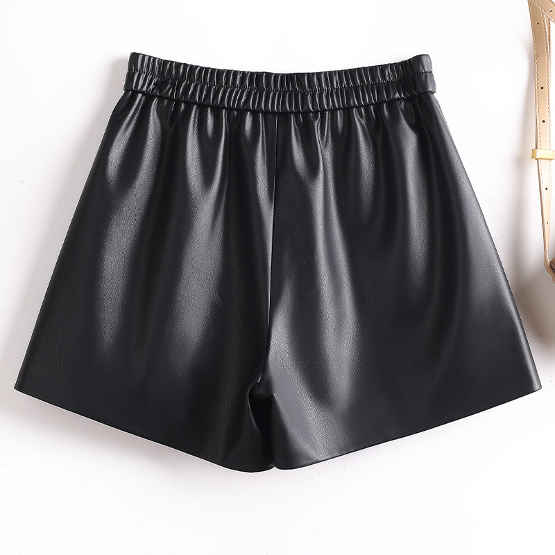高腰宽松阔腿a字外穿绵羊皮靴裤 2025秋装 女短裤 海宁真皮皮裤 新款