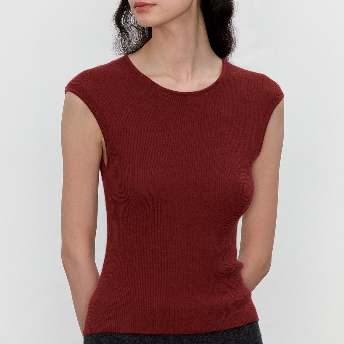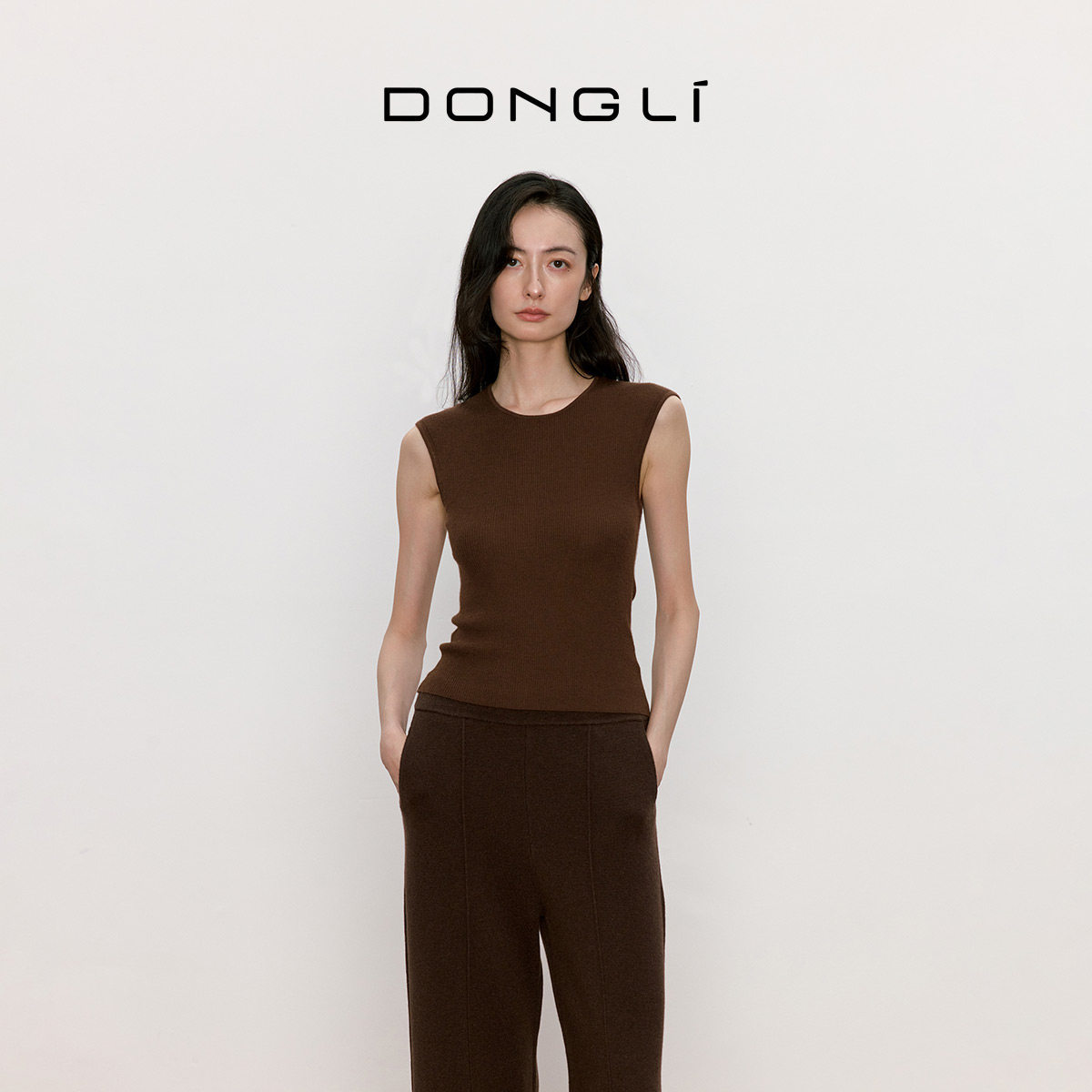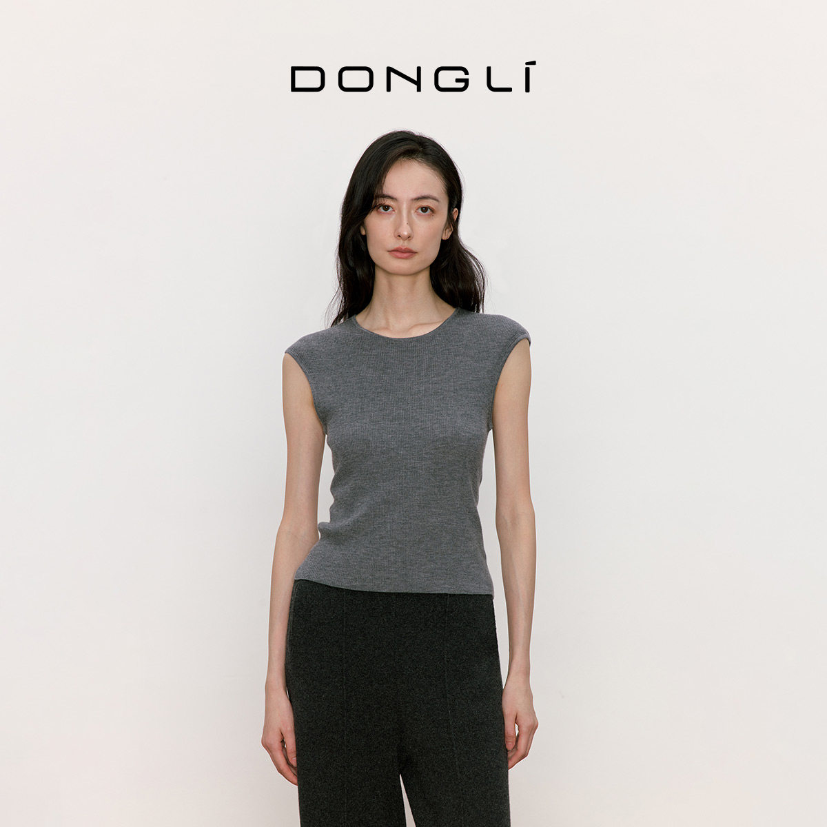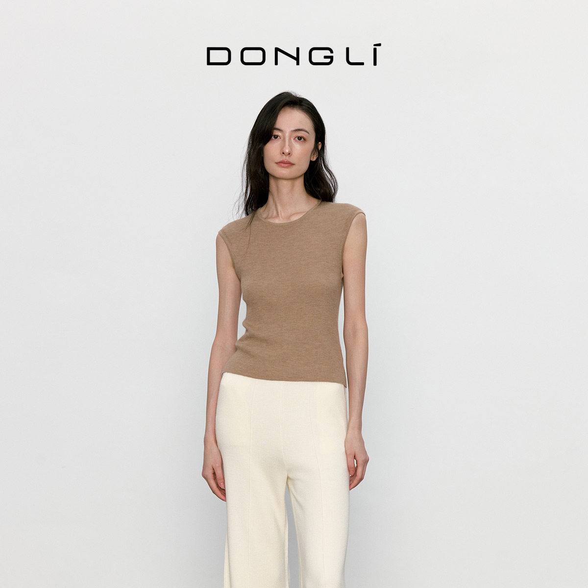 东黎山羊绒 针织马甲5353 女士秋冬精纺圆领宽肩羊绒背心打底无袖