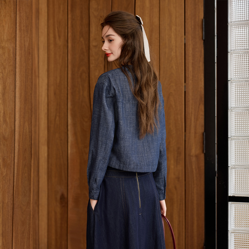 白鹿语优雅复古绣花水洗牛仔外套25秋新款 设计感小众百搭气质上衣