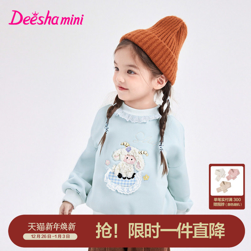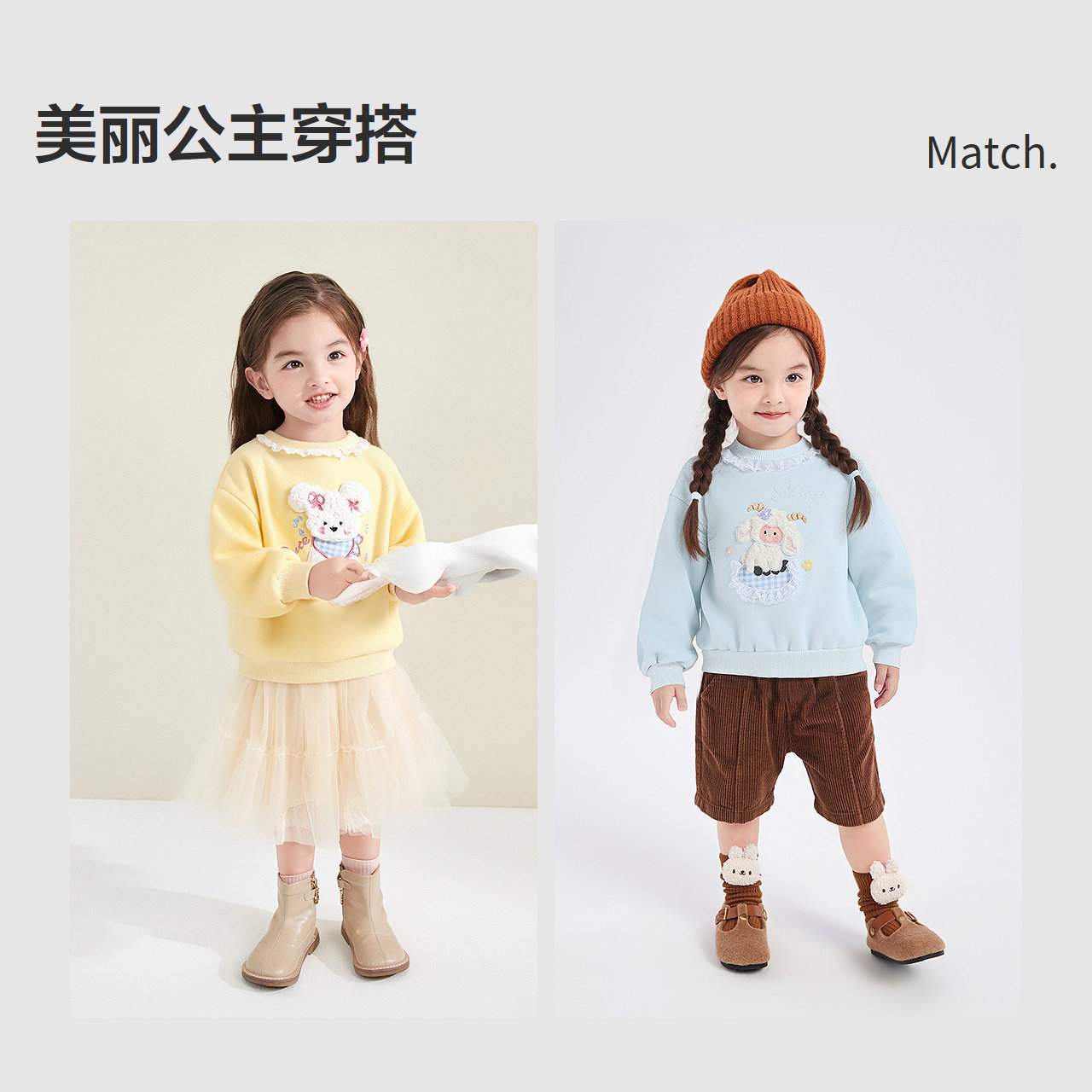 新款 卫衣秋冬季 宝宝儿童厚绒保暖打底衣 女童长袖 笛莎官方旗舰童装
