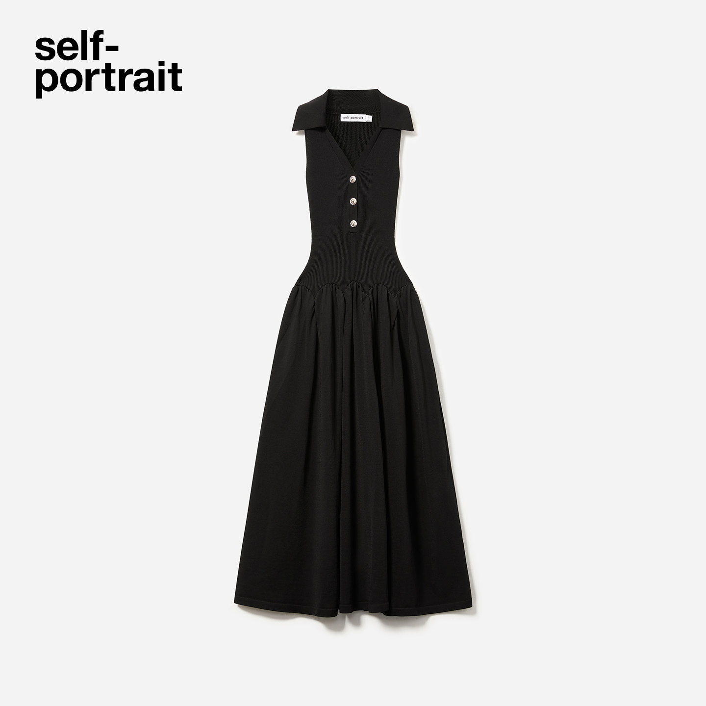 黑气质翻领无袖 self 经典 2025秋冬新款 针织连衣裙 portrait