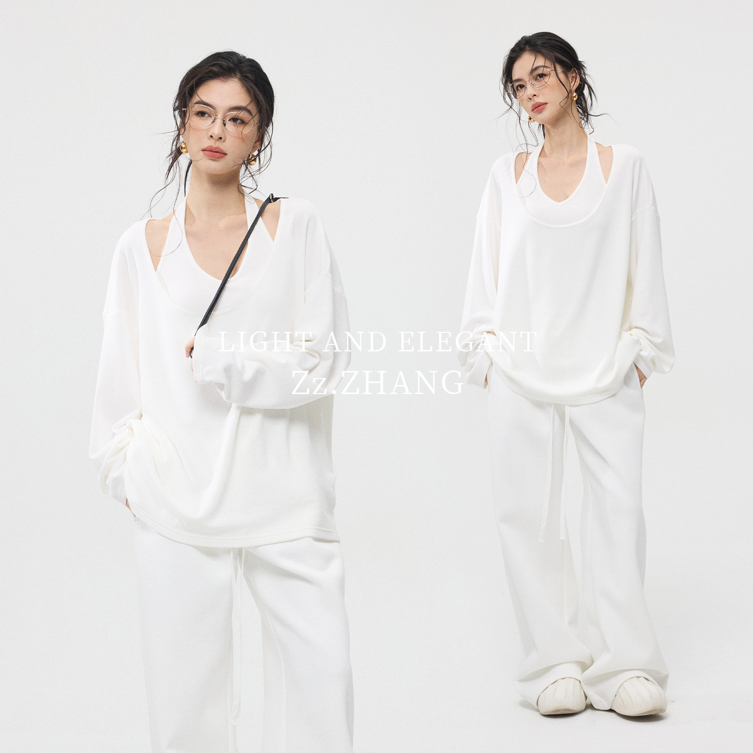 ZzZHANG|轻盈午后_懒人叠穿舒适百搭真两件宽松T恤打底衫