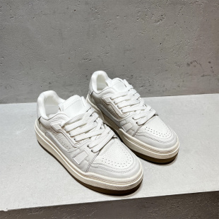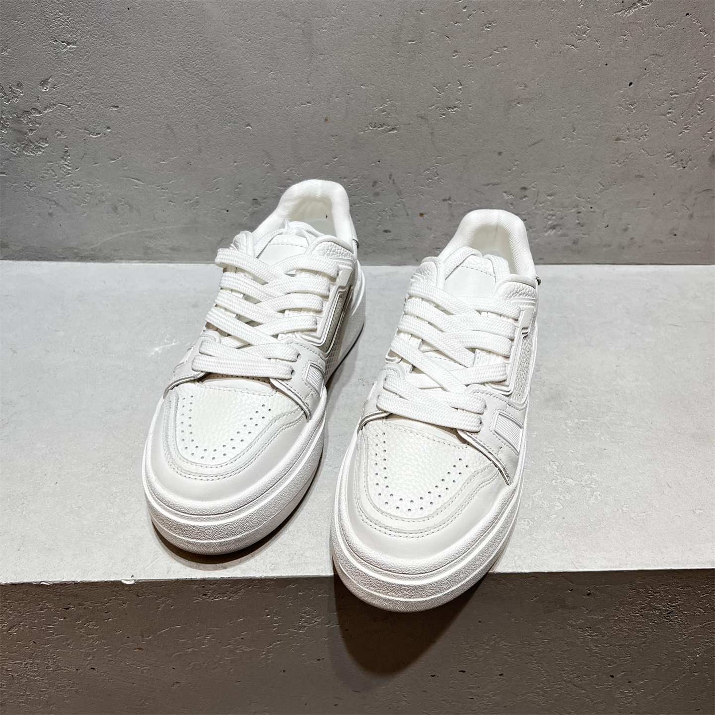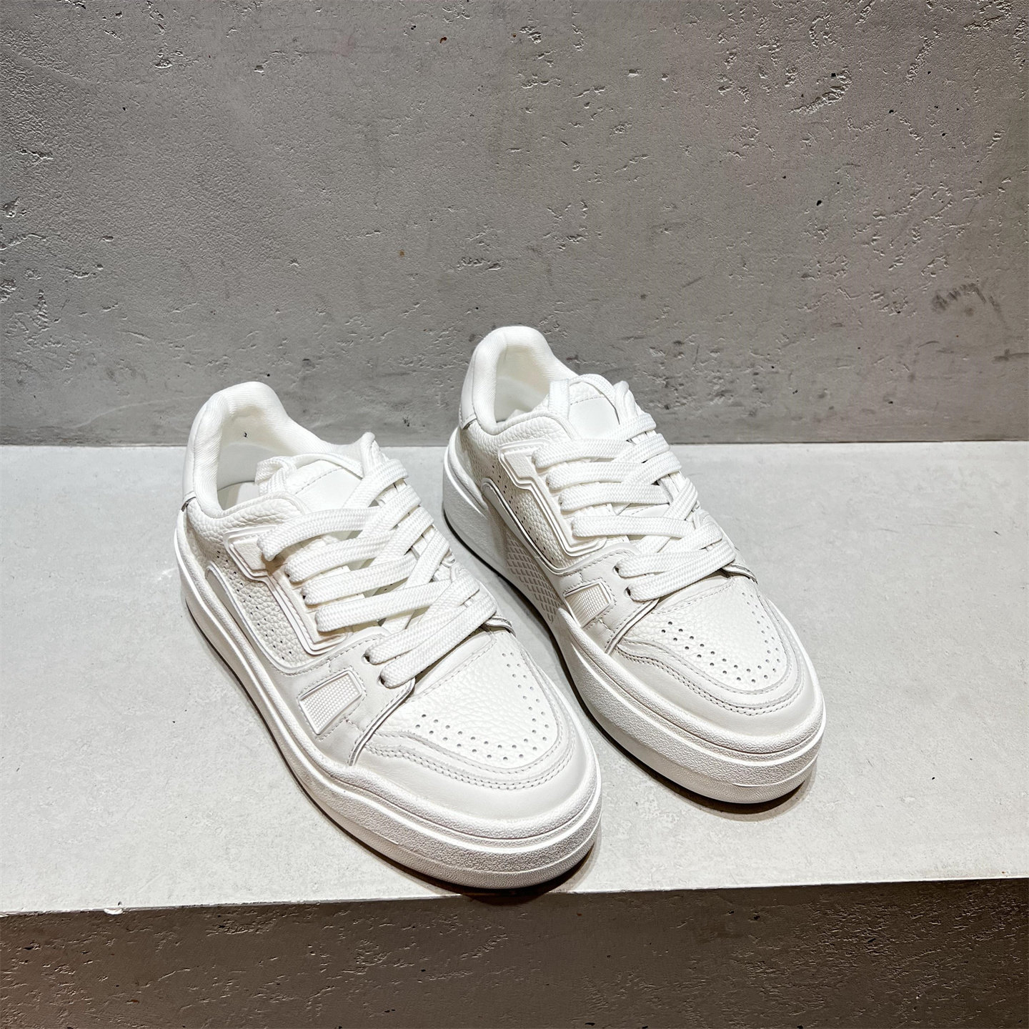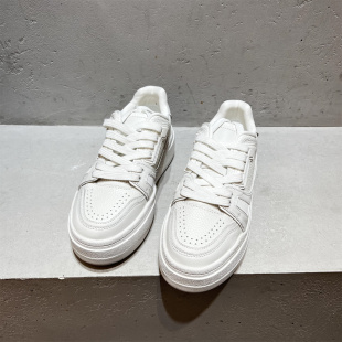 松糕底休闲板鞋 欧货真皮系带厚底百搭小白鞋 2026春新款 欧洲站女鞋