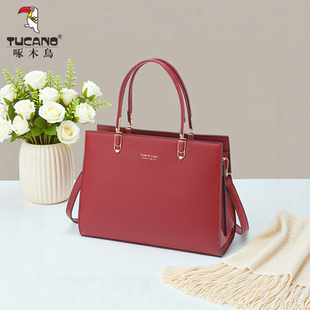 啄木鸟女包真皮手提包2026新款 婚包妈妈包包大容量 单肩斜挎包春季
