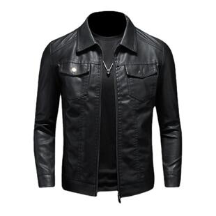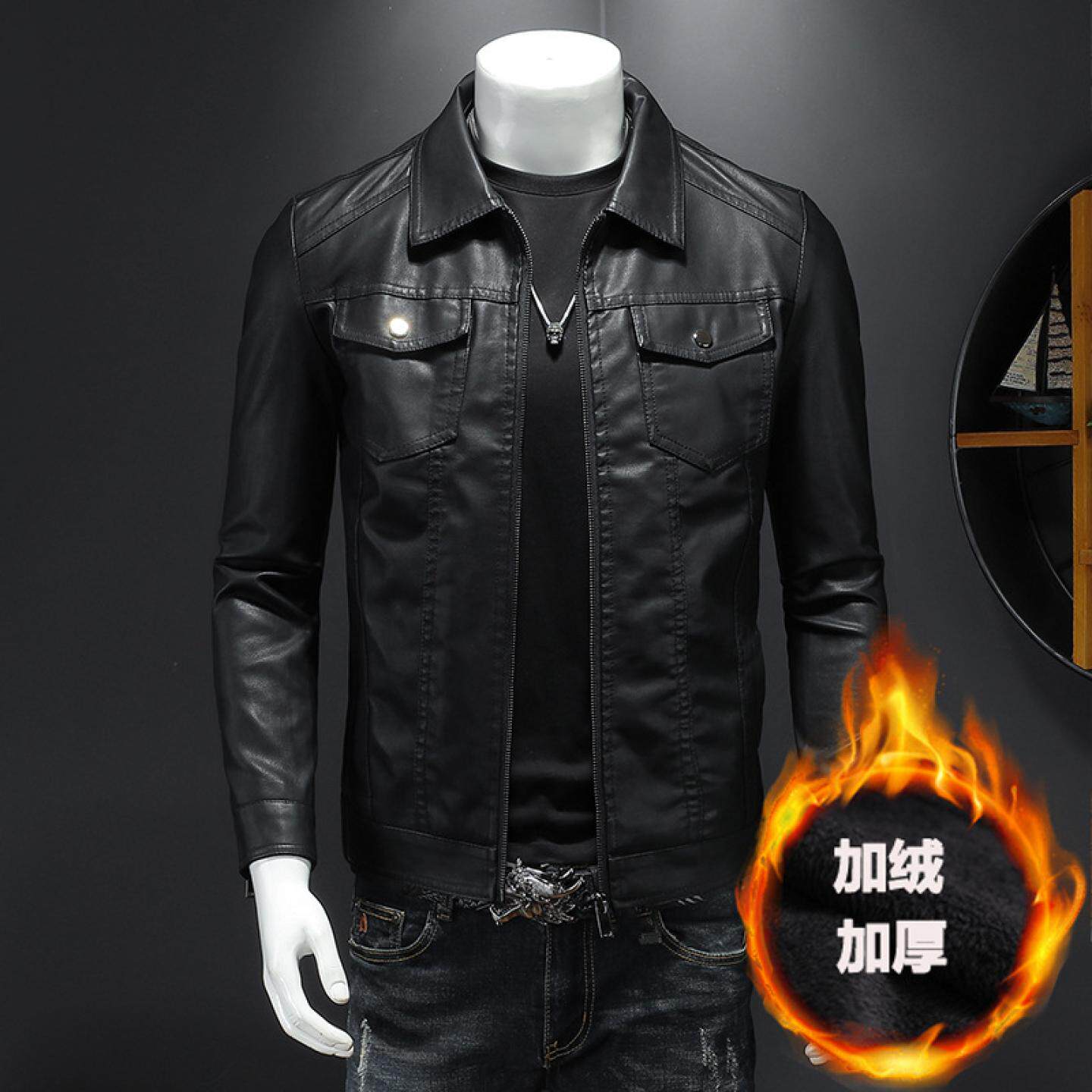 修身 男士 韩版 春秋冬季 潮流加绒加厚机车外套男皮夹克 皮衣2022新款